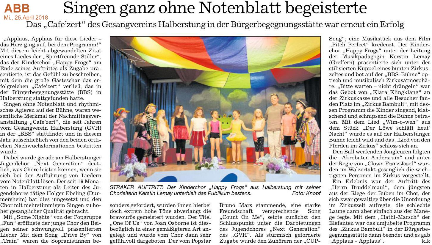 Fotos vom "Cafe`zert"am Sonntag, 22.April 2018 hier
