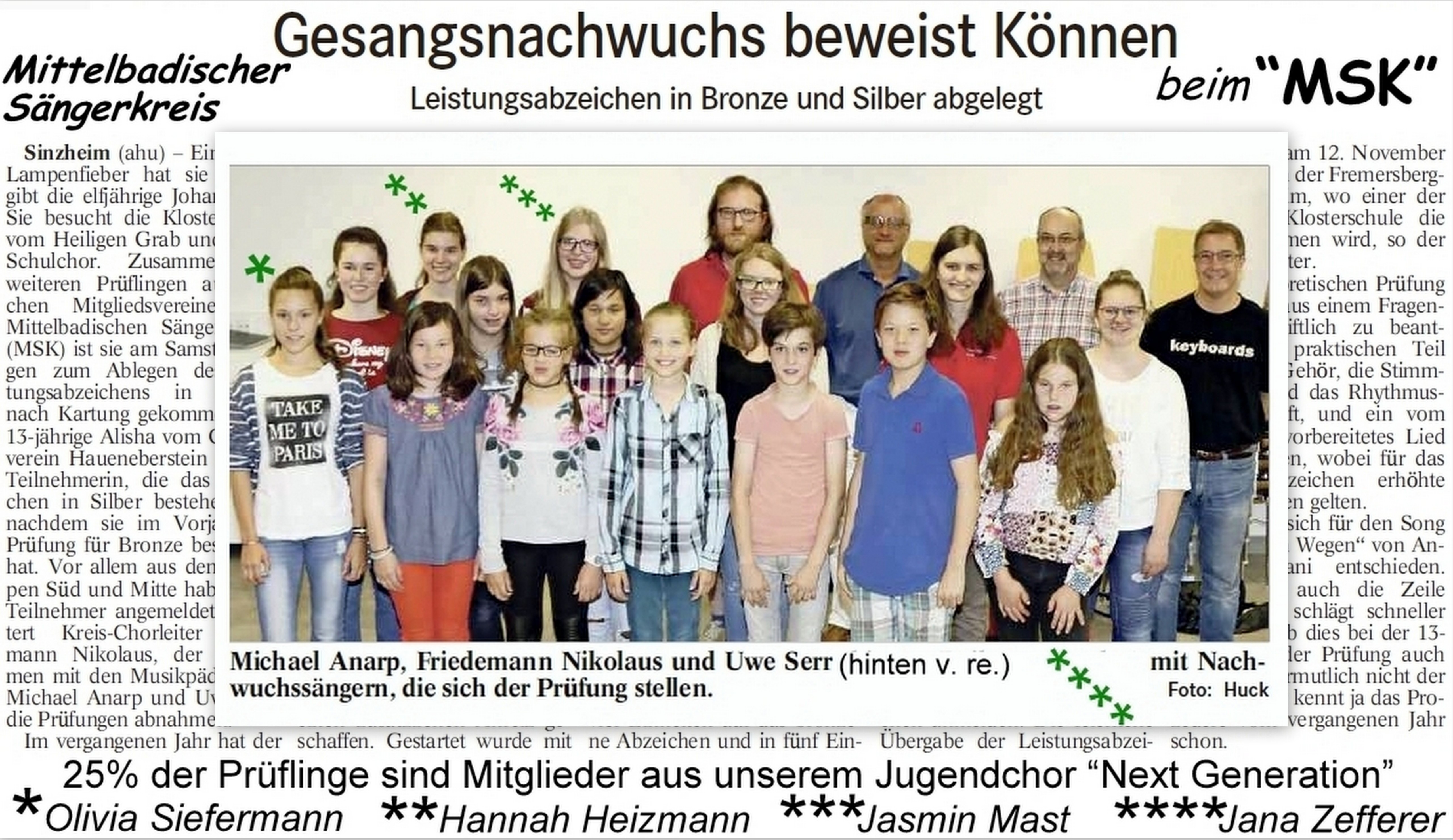 Jugendchor "Next Generation am Sonntag, 8.Oktober 2017