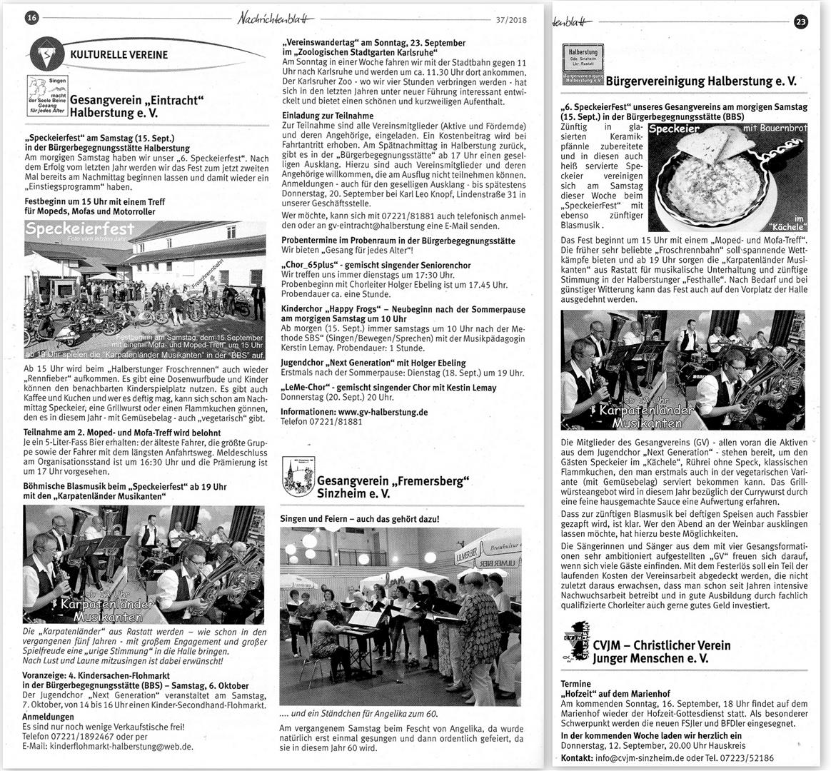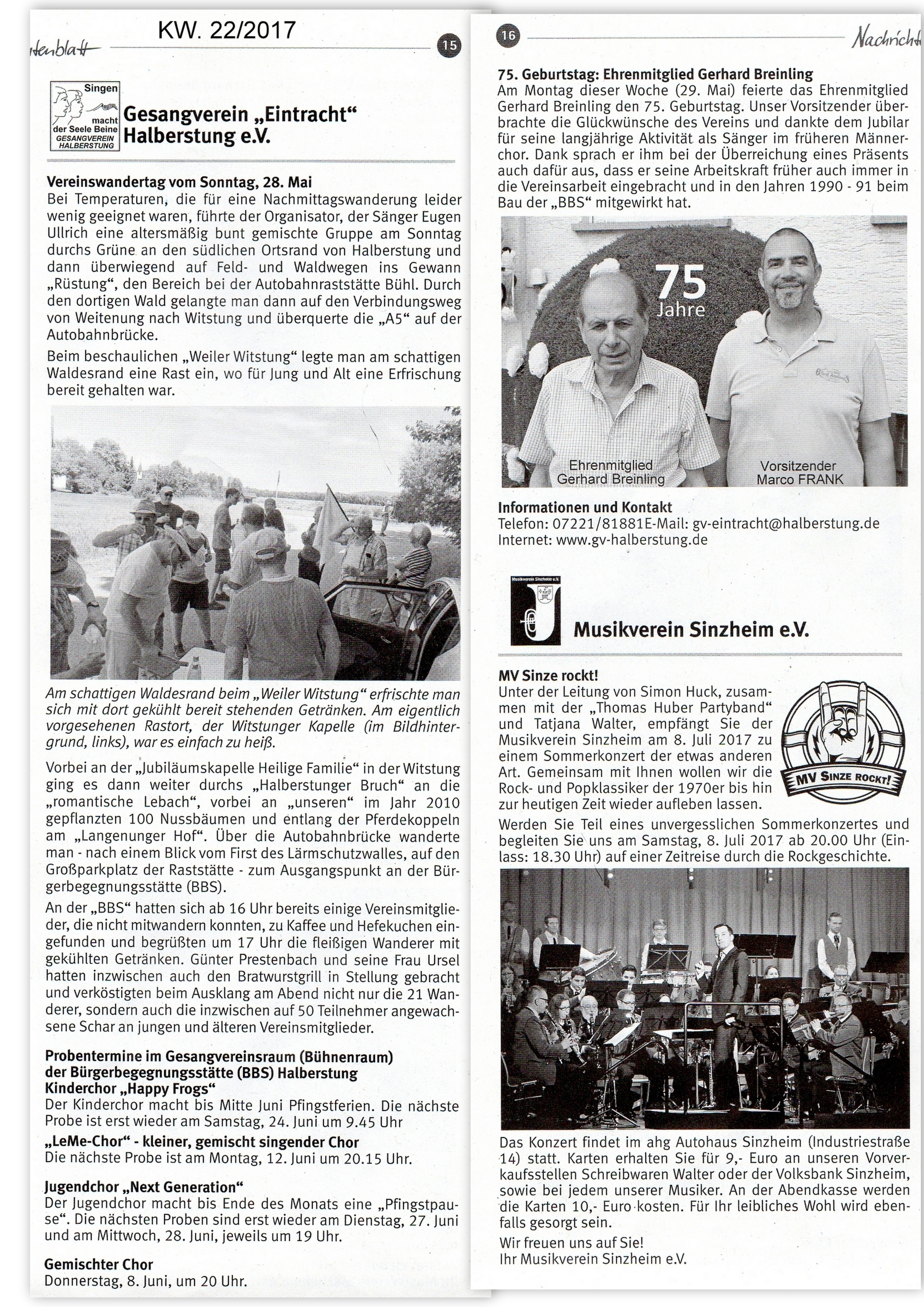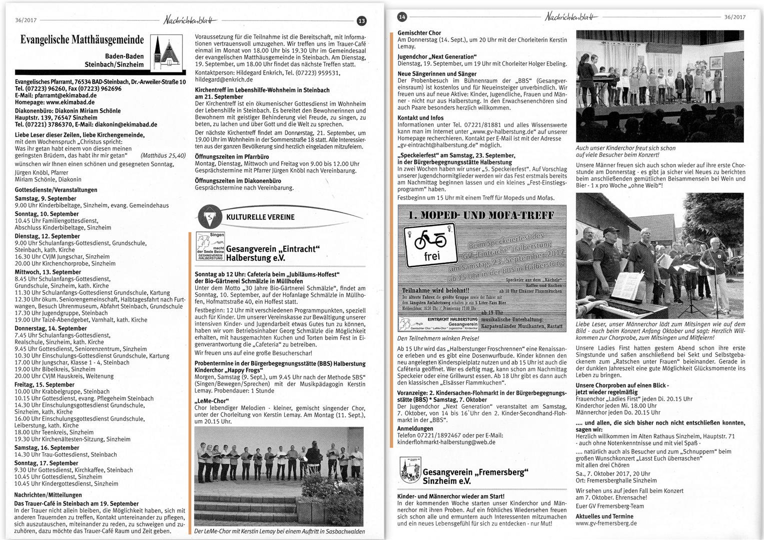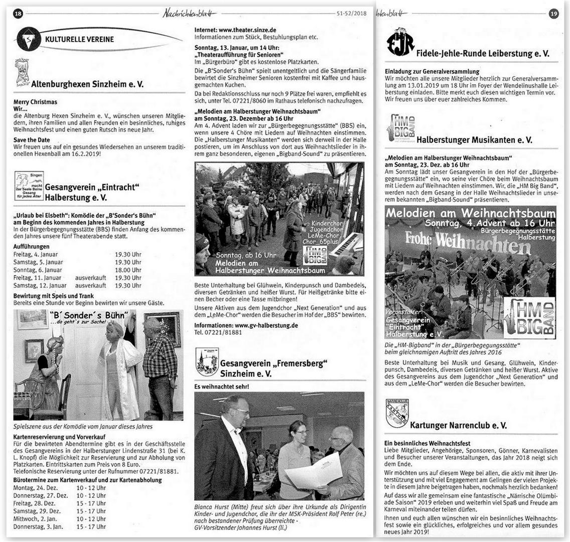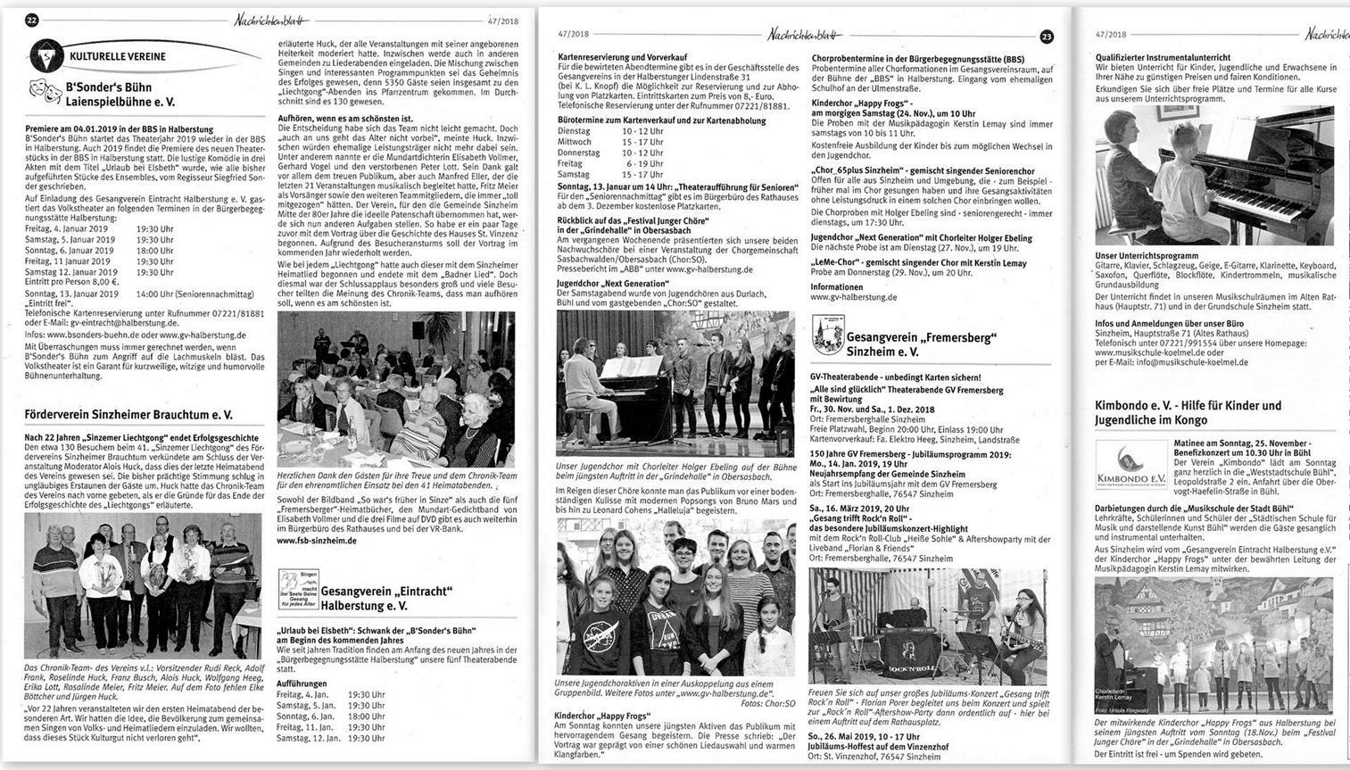 Veröffentlichungen im NACHRICHTENBLATT der Gemeinde Sinzheim
