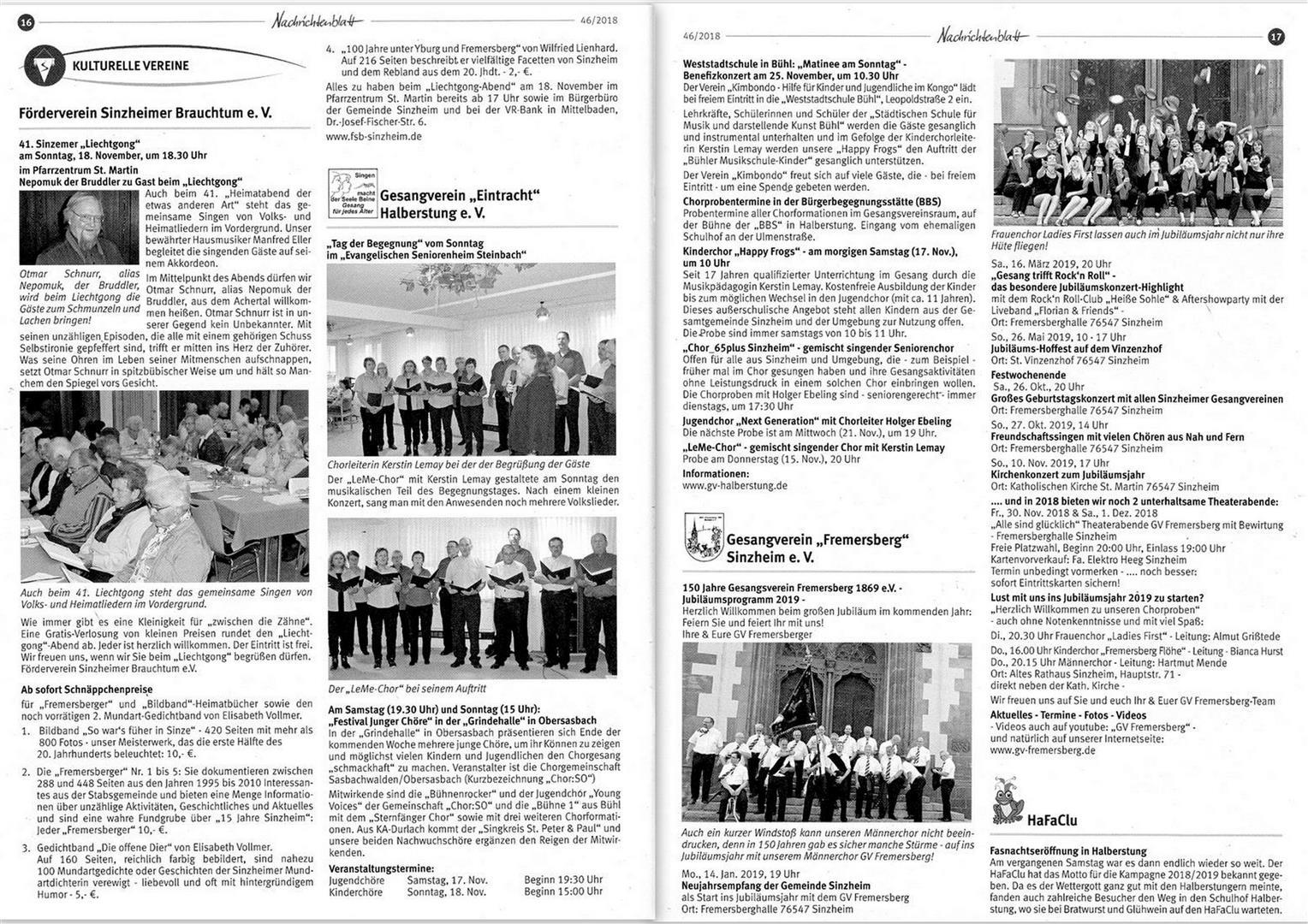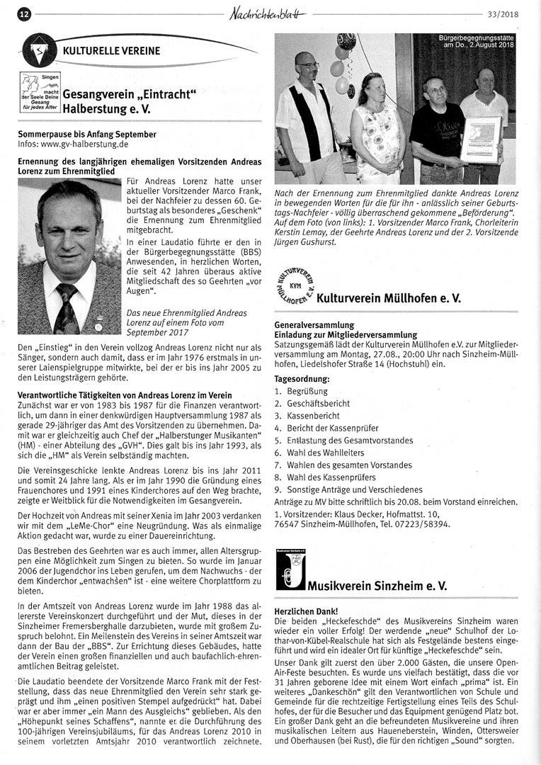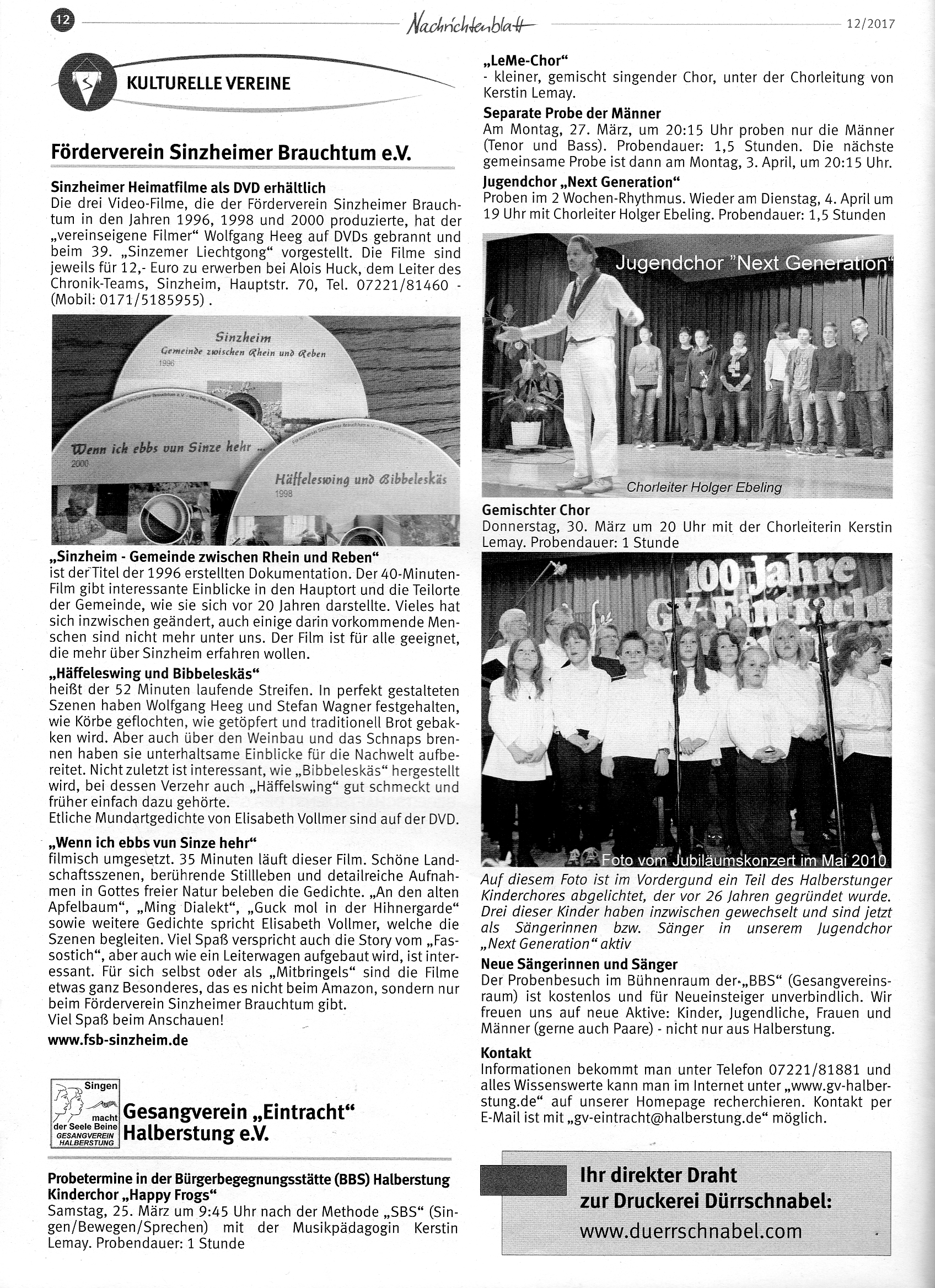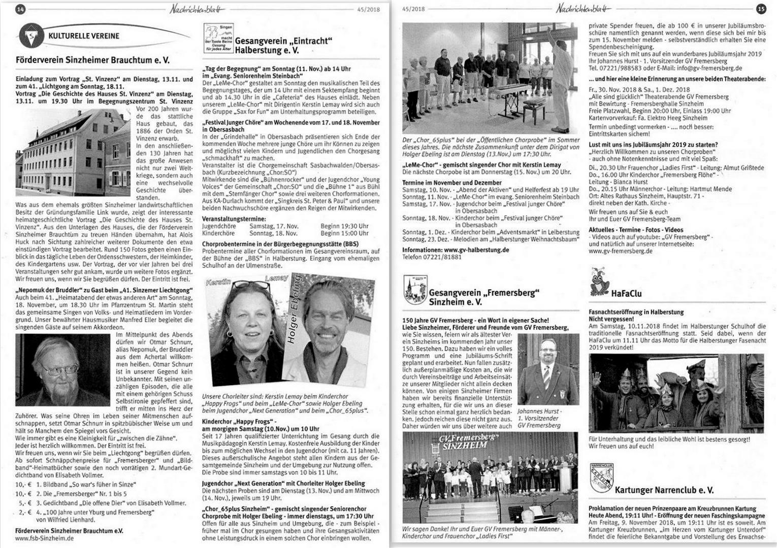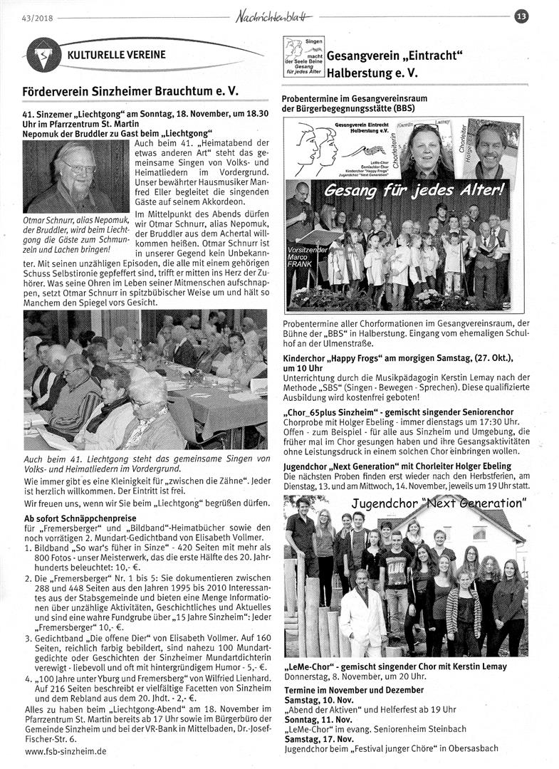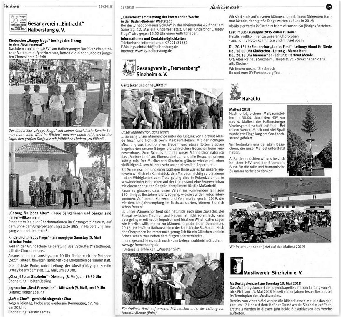 Veröffentlichungen im NACHRICHTENBLATT der Gemeinde Sinzheim