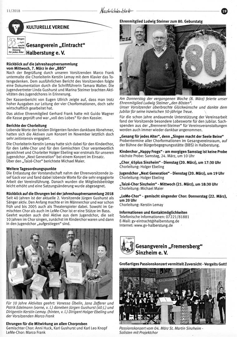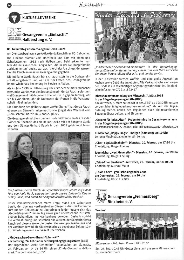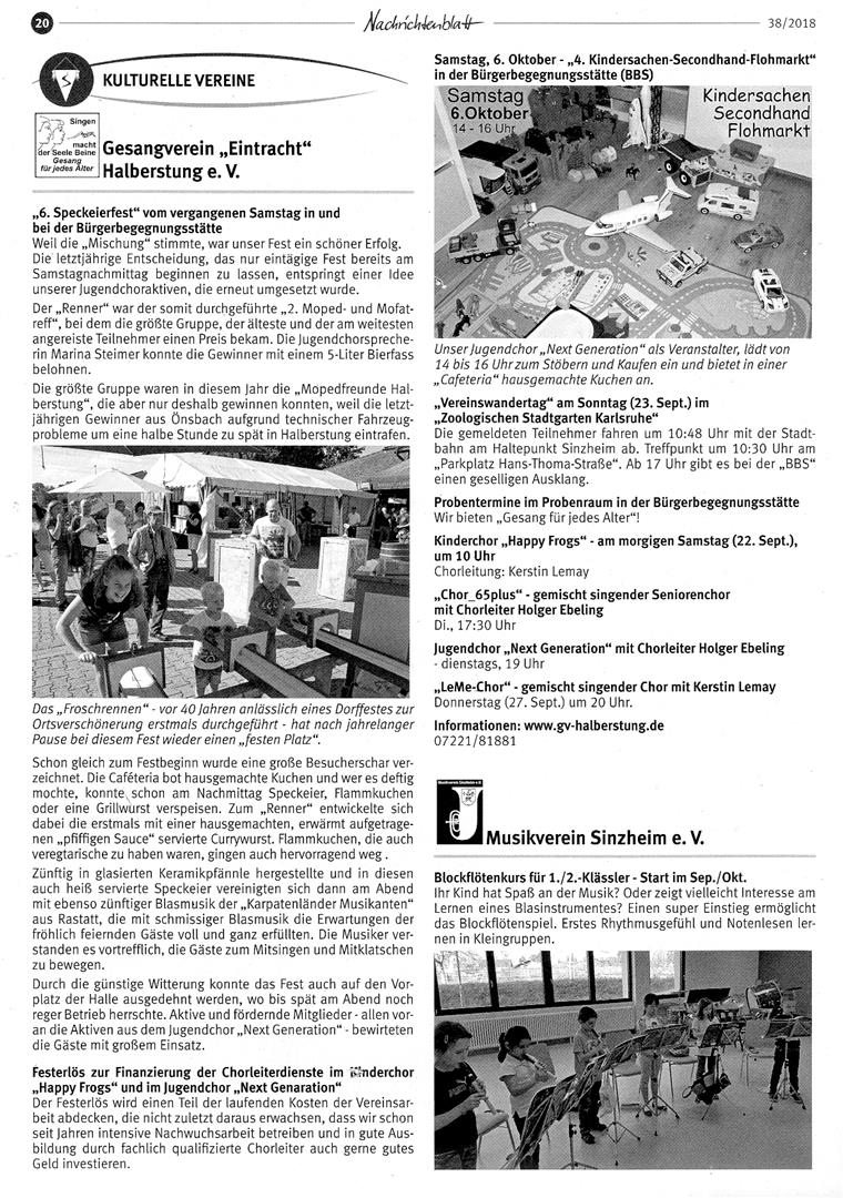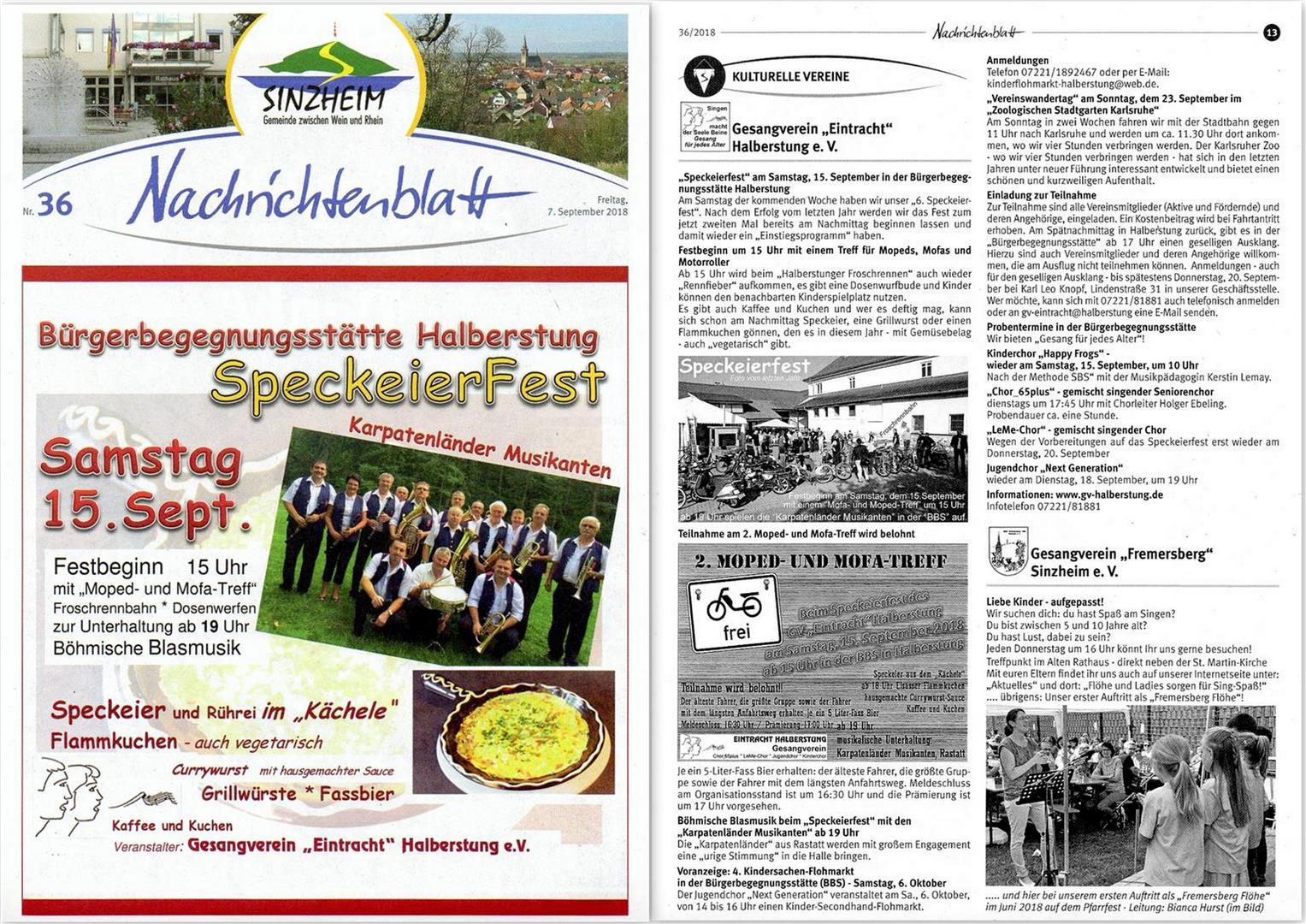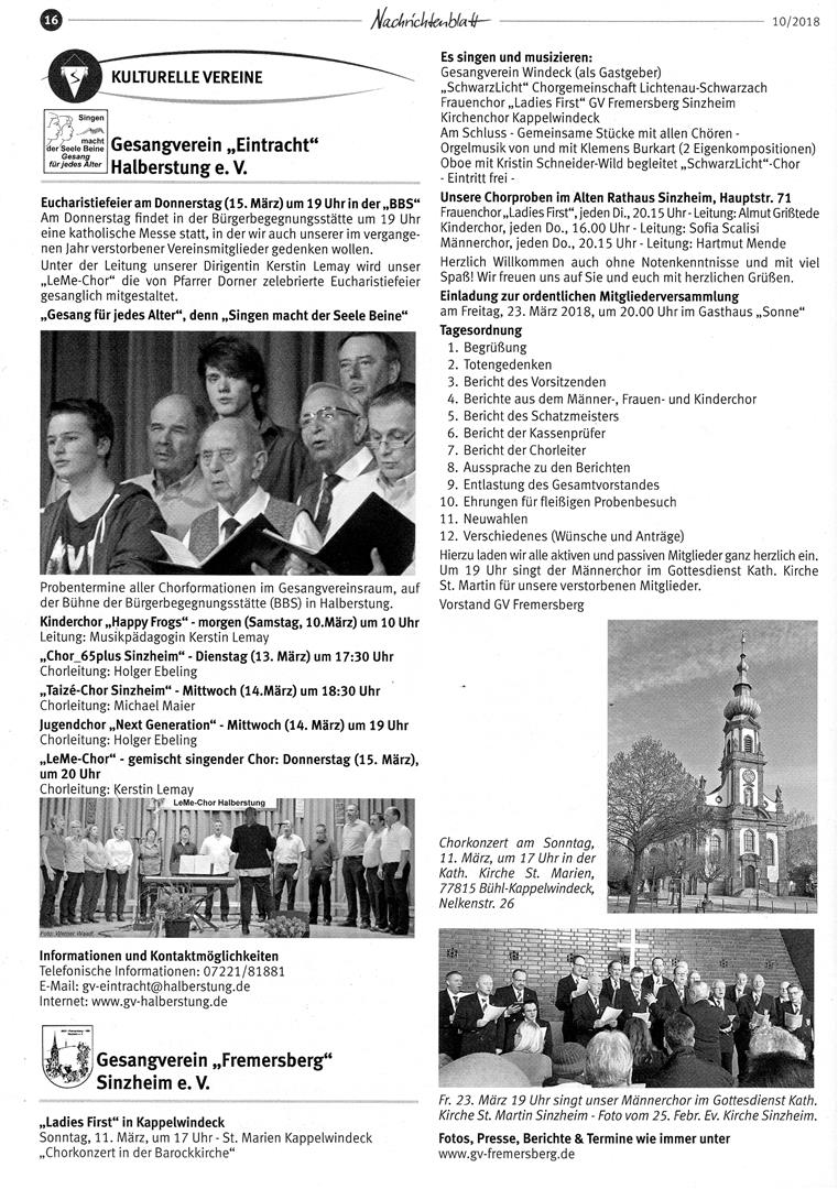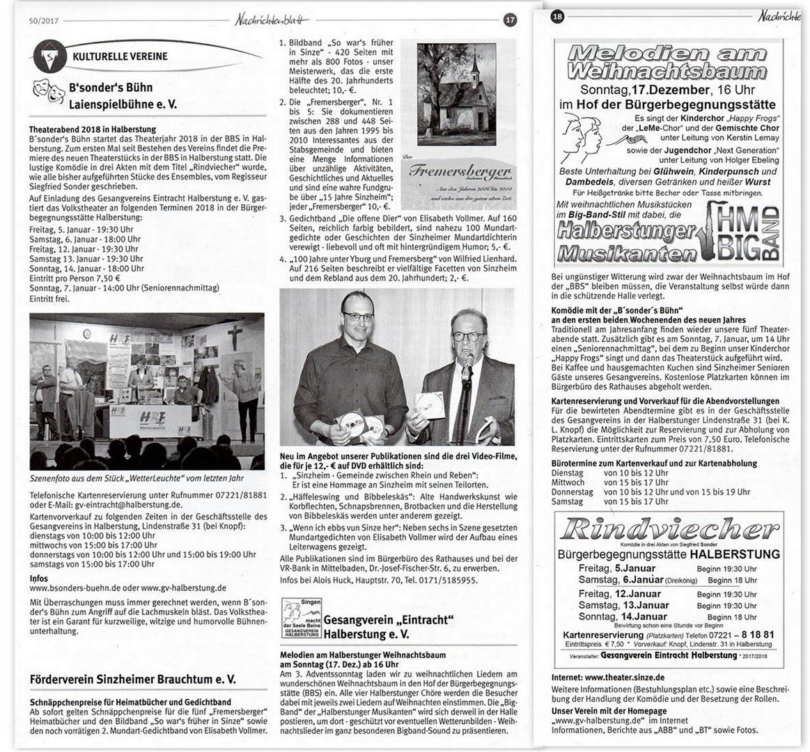 Veröffentlichungen im NACHRICHTENBLATT der Gemeinde Sinzheim