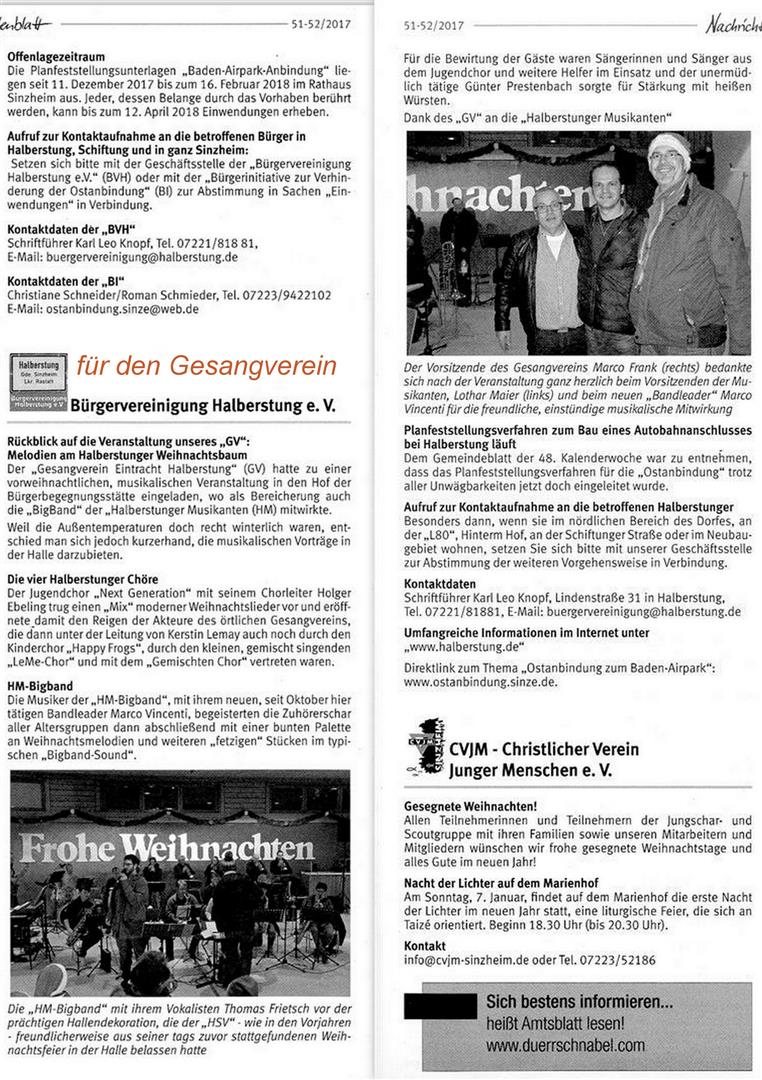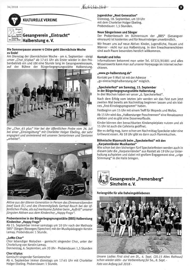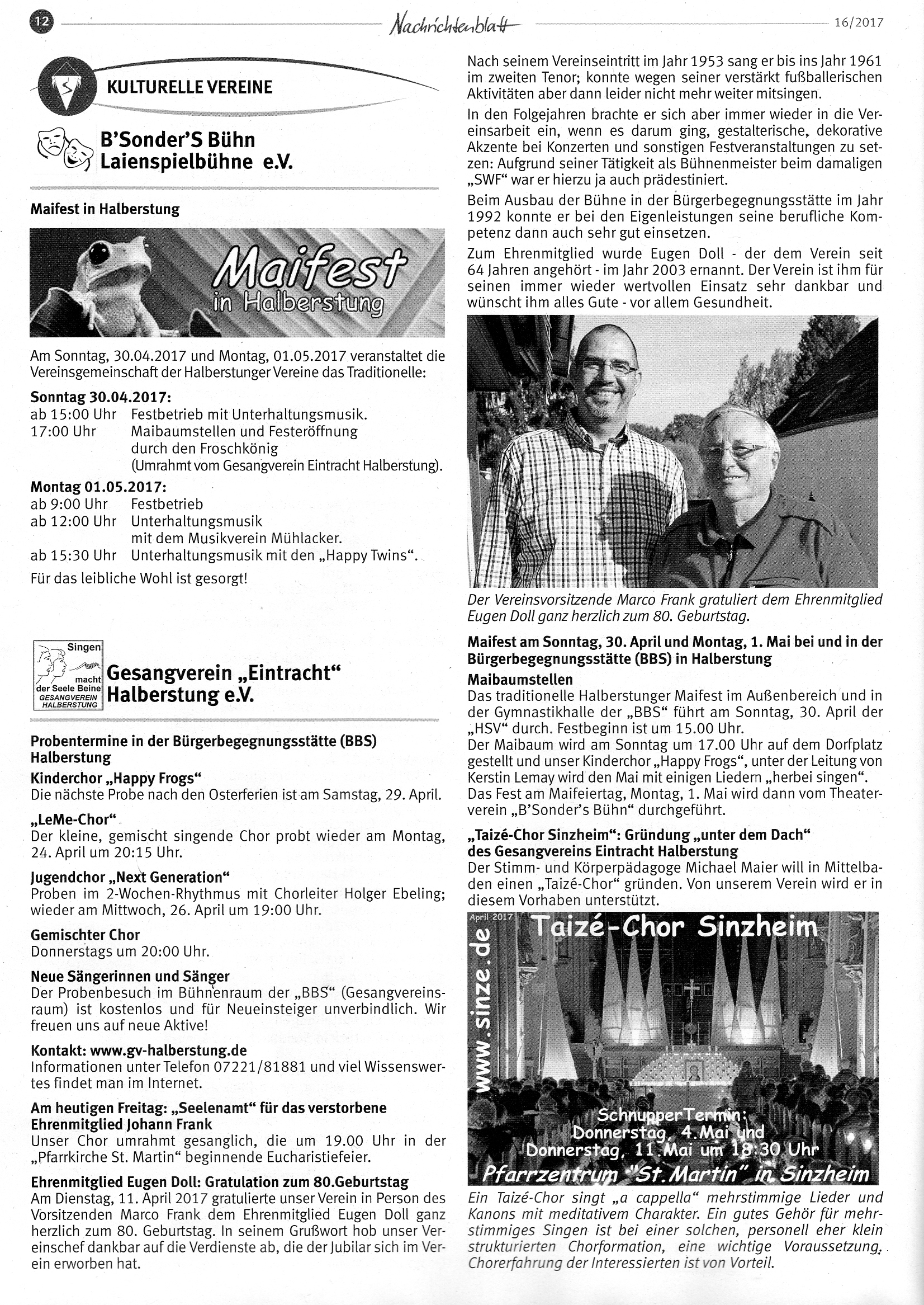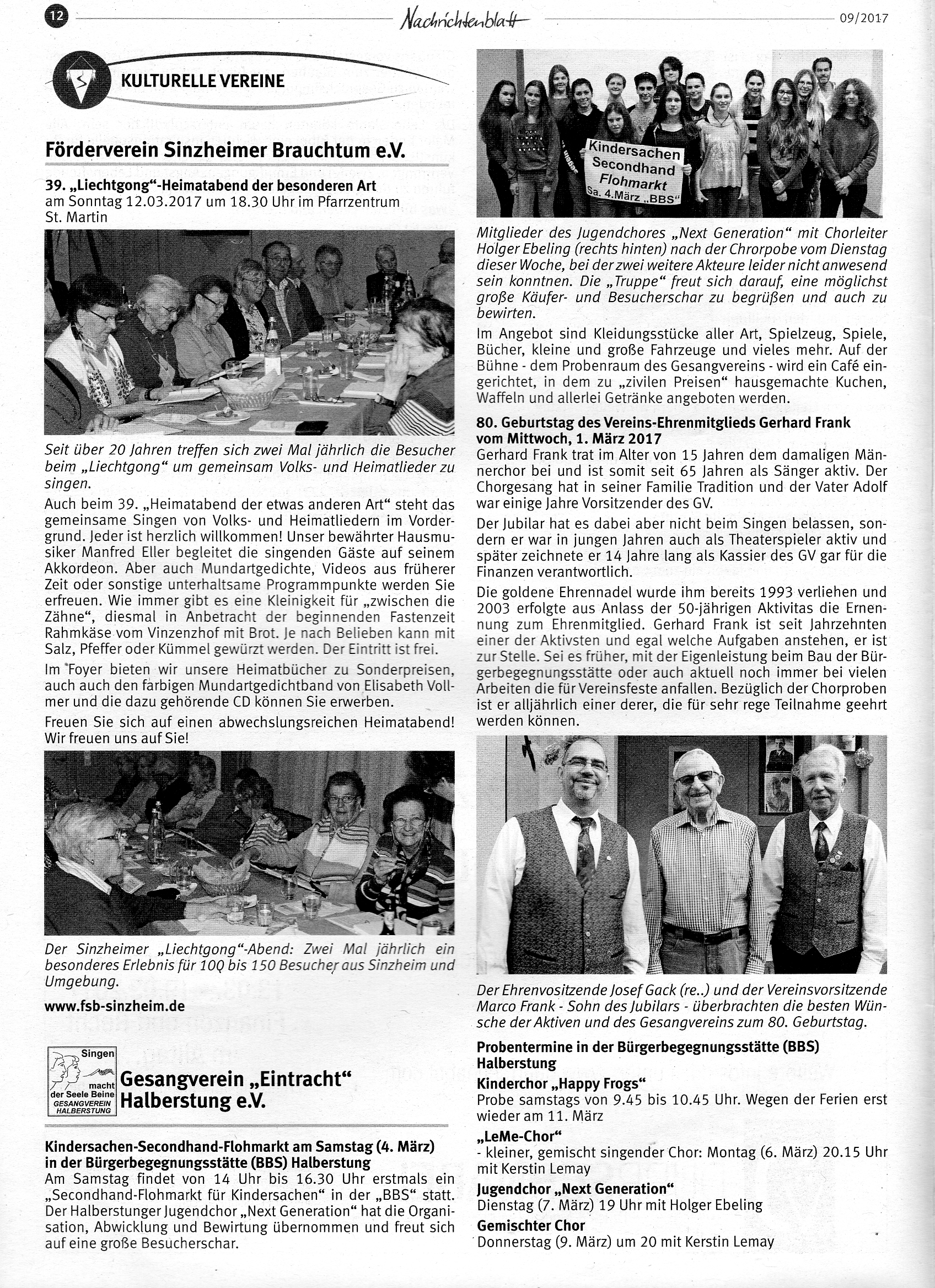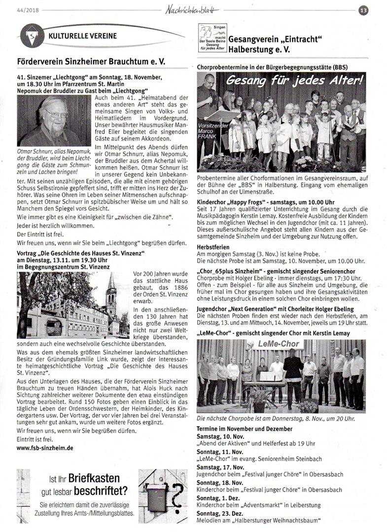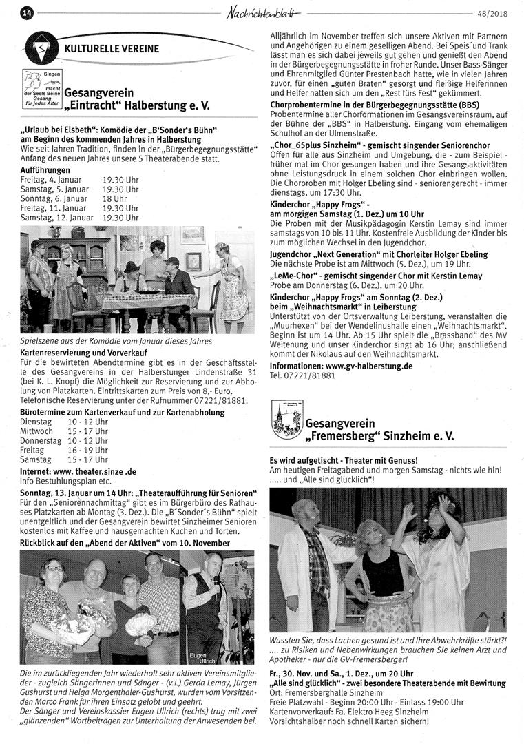 Veröffentlichungen im NACHRICHTENBLATT der Gemeinde Sinzheim