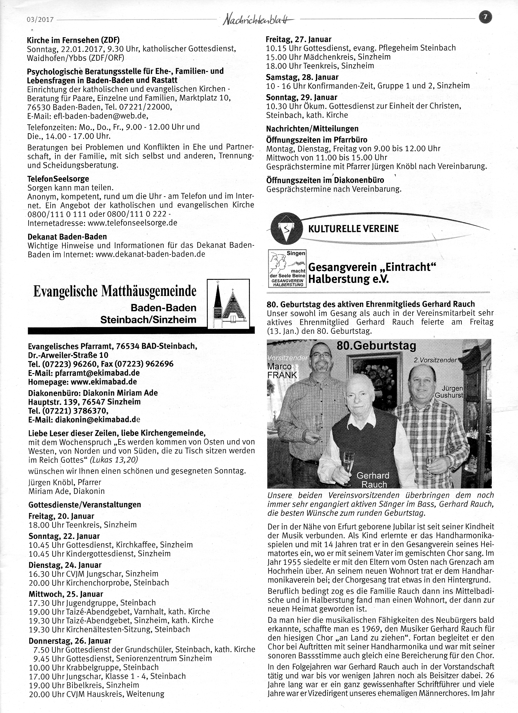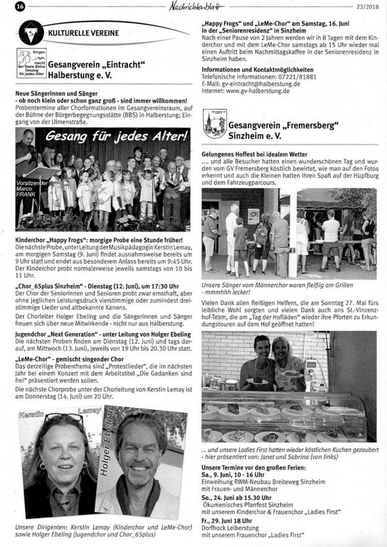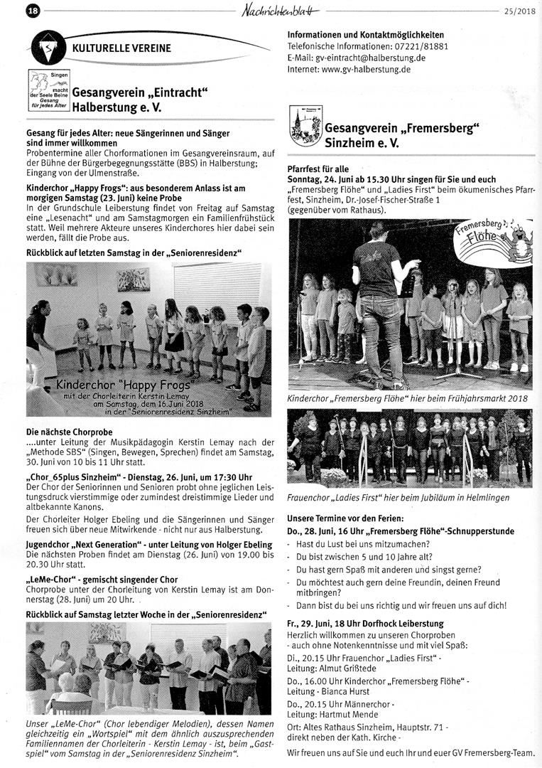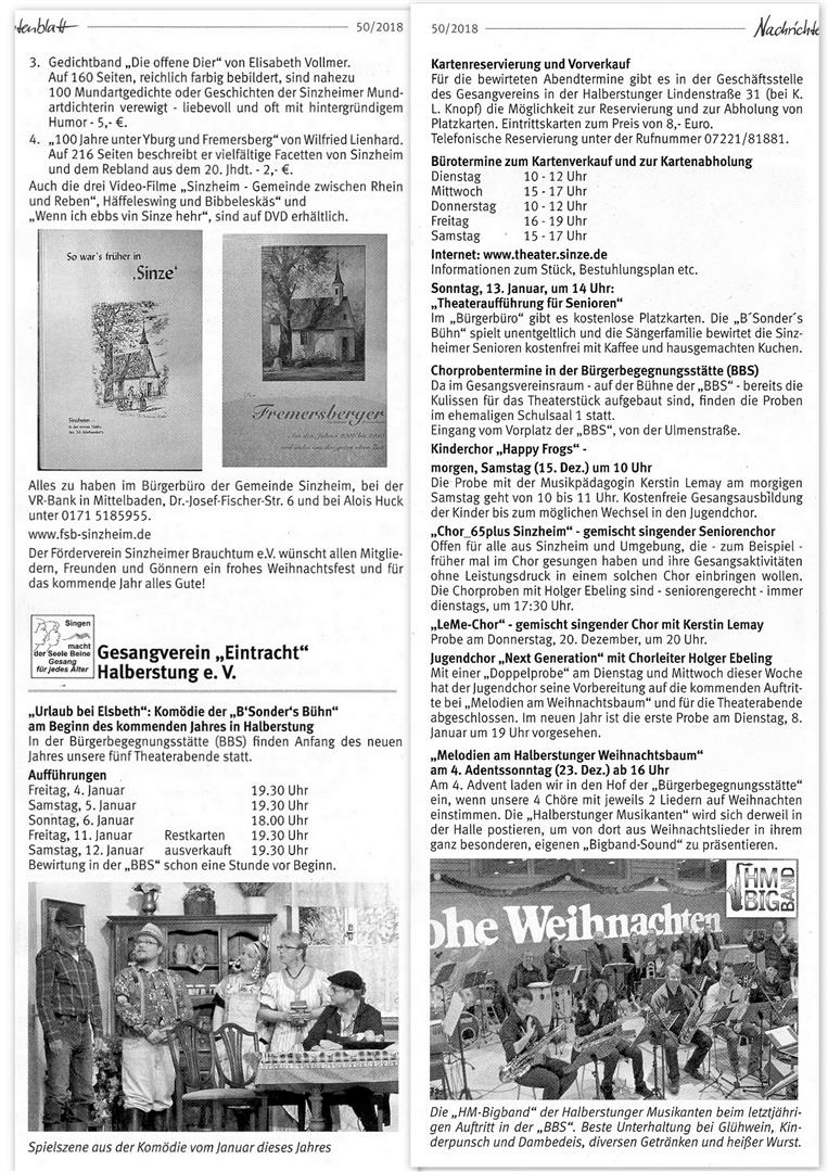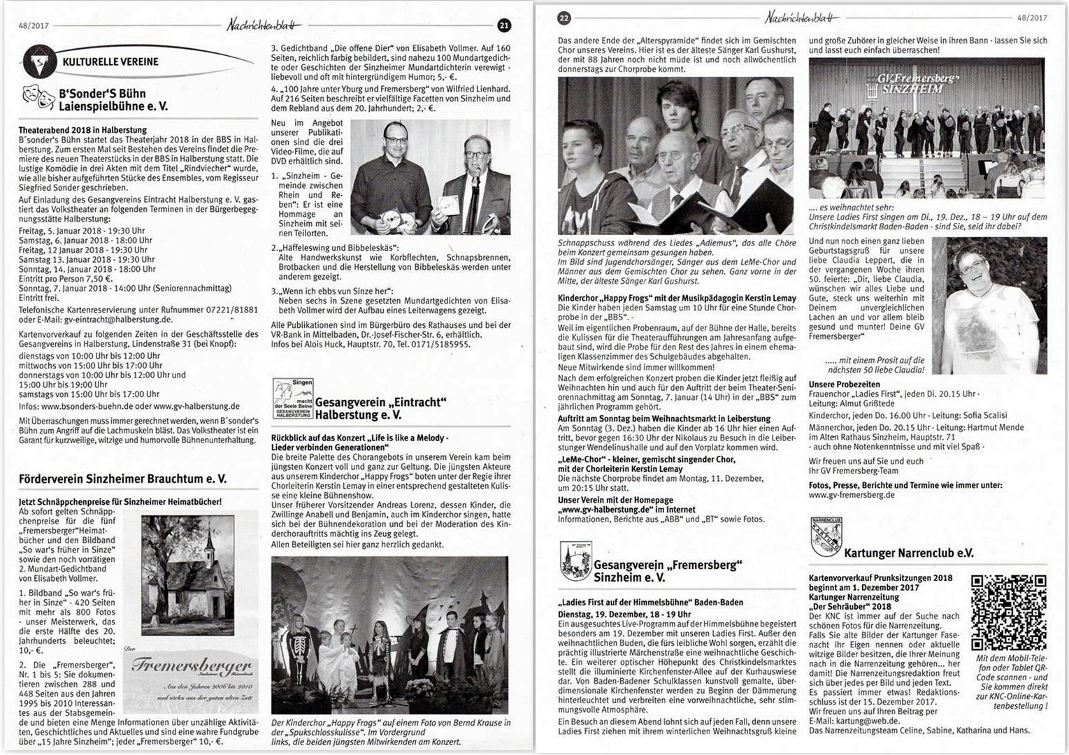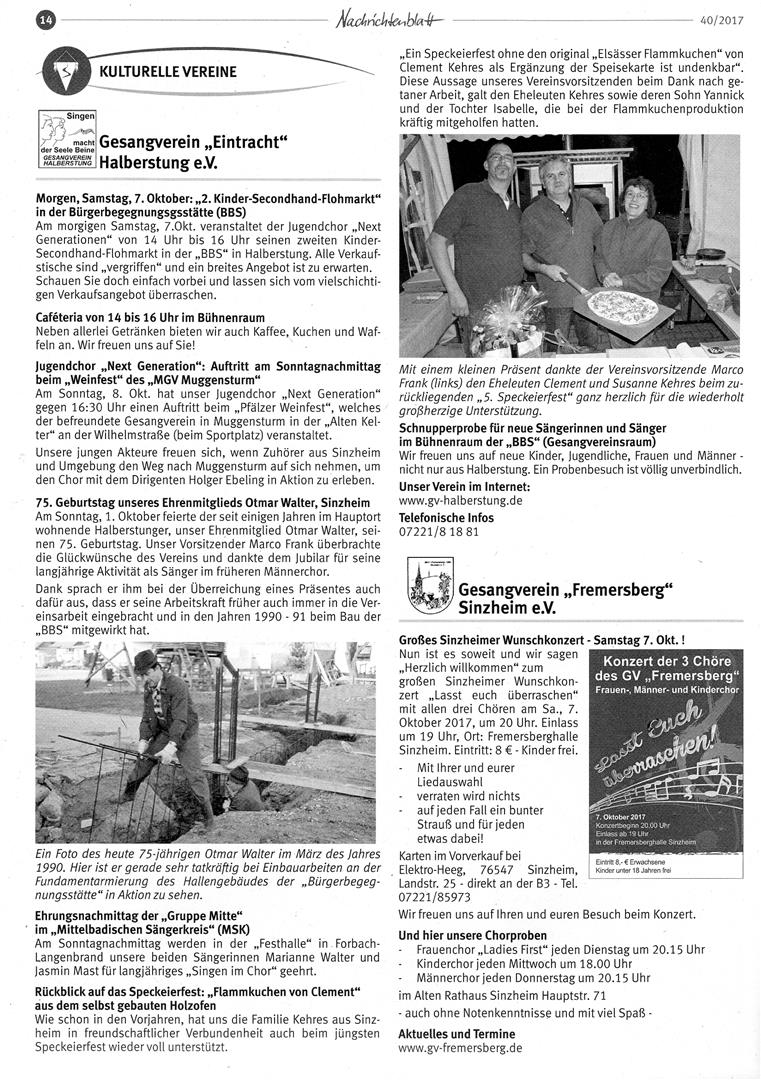 Veröffentlichungen im NACHRICHTENBLATT der Gemeinde Sinzheim