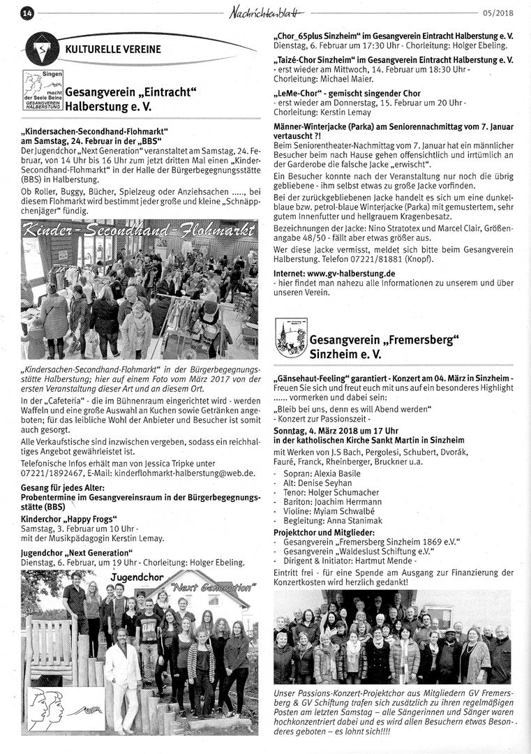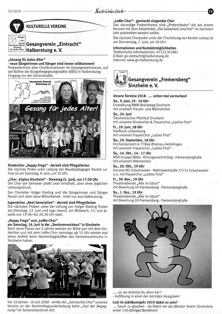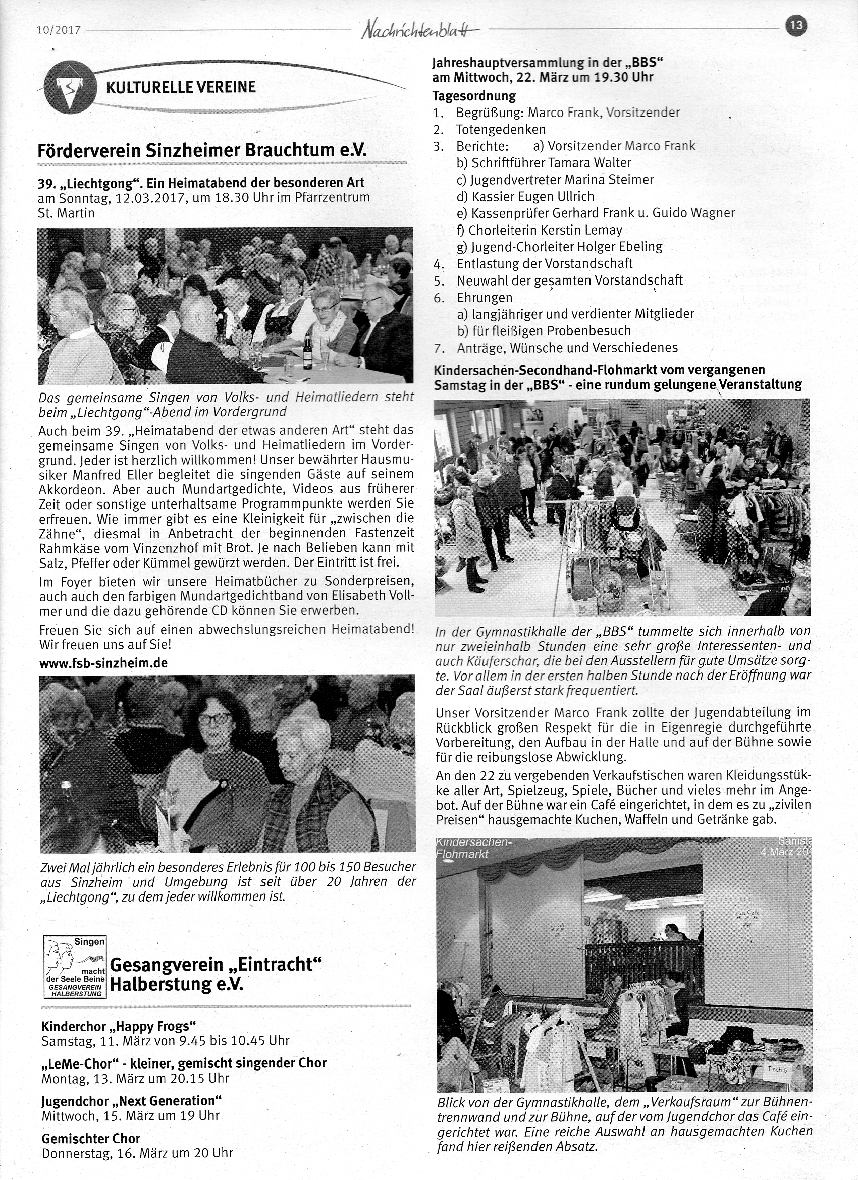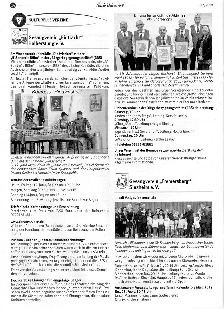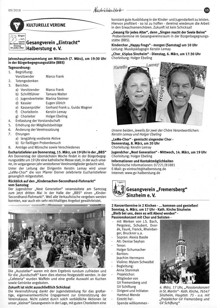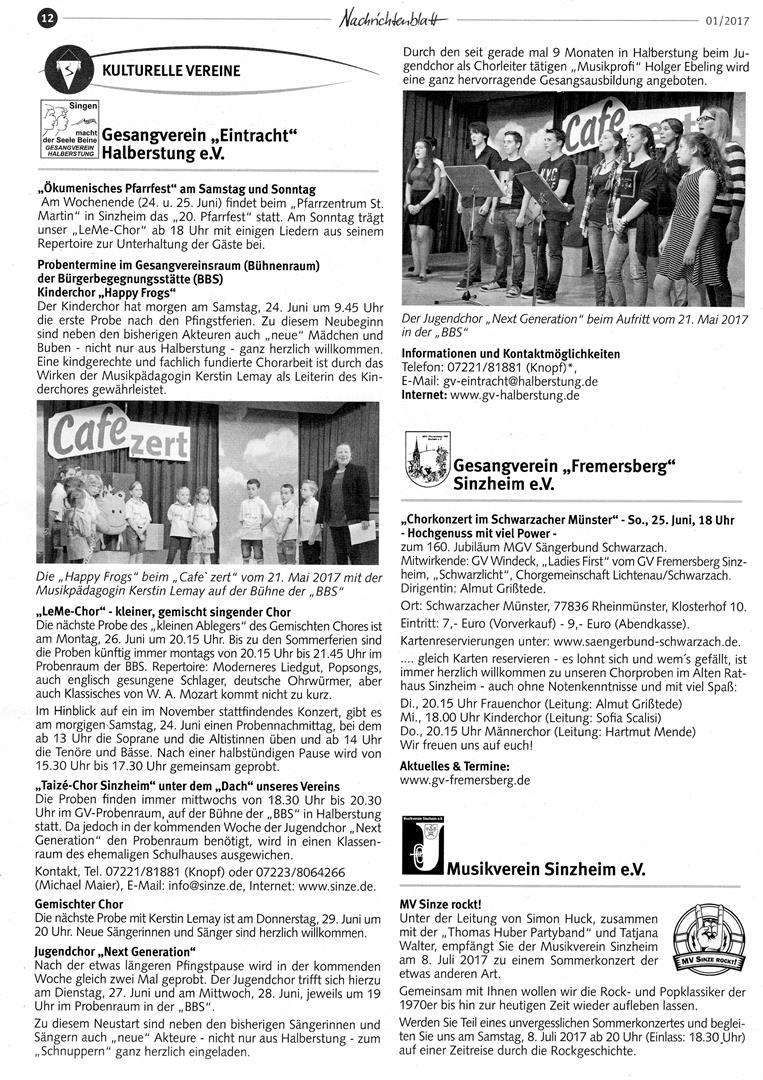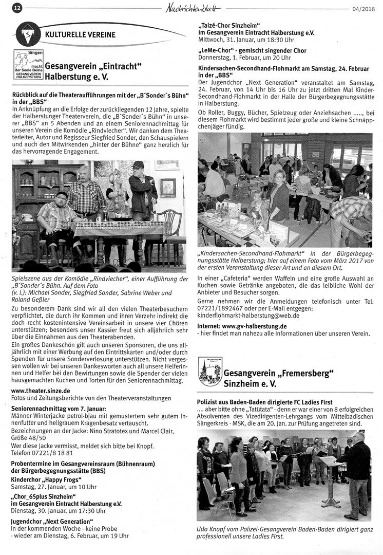 Veröffentlichungen im NACHRICHTENBLATT der Gemeinde Sinzheim