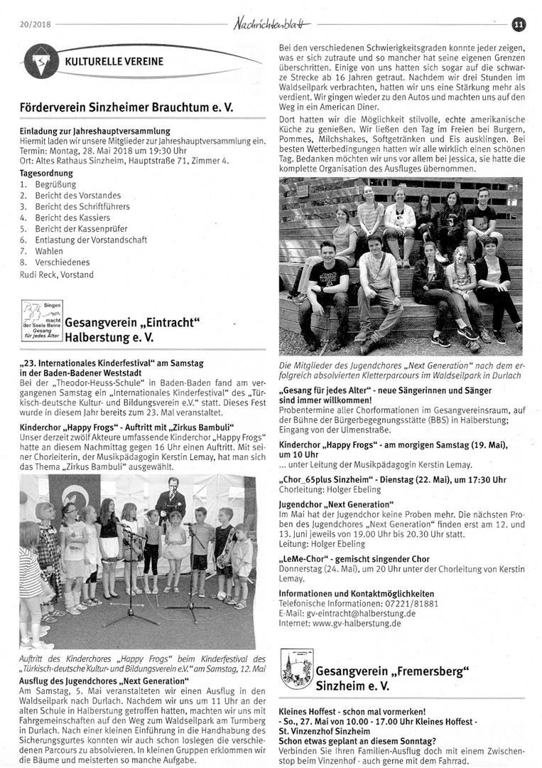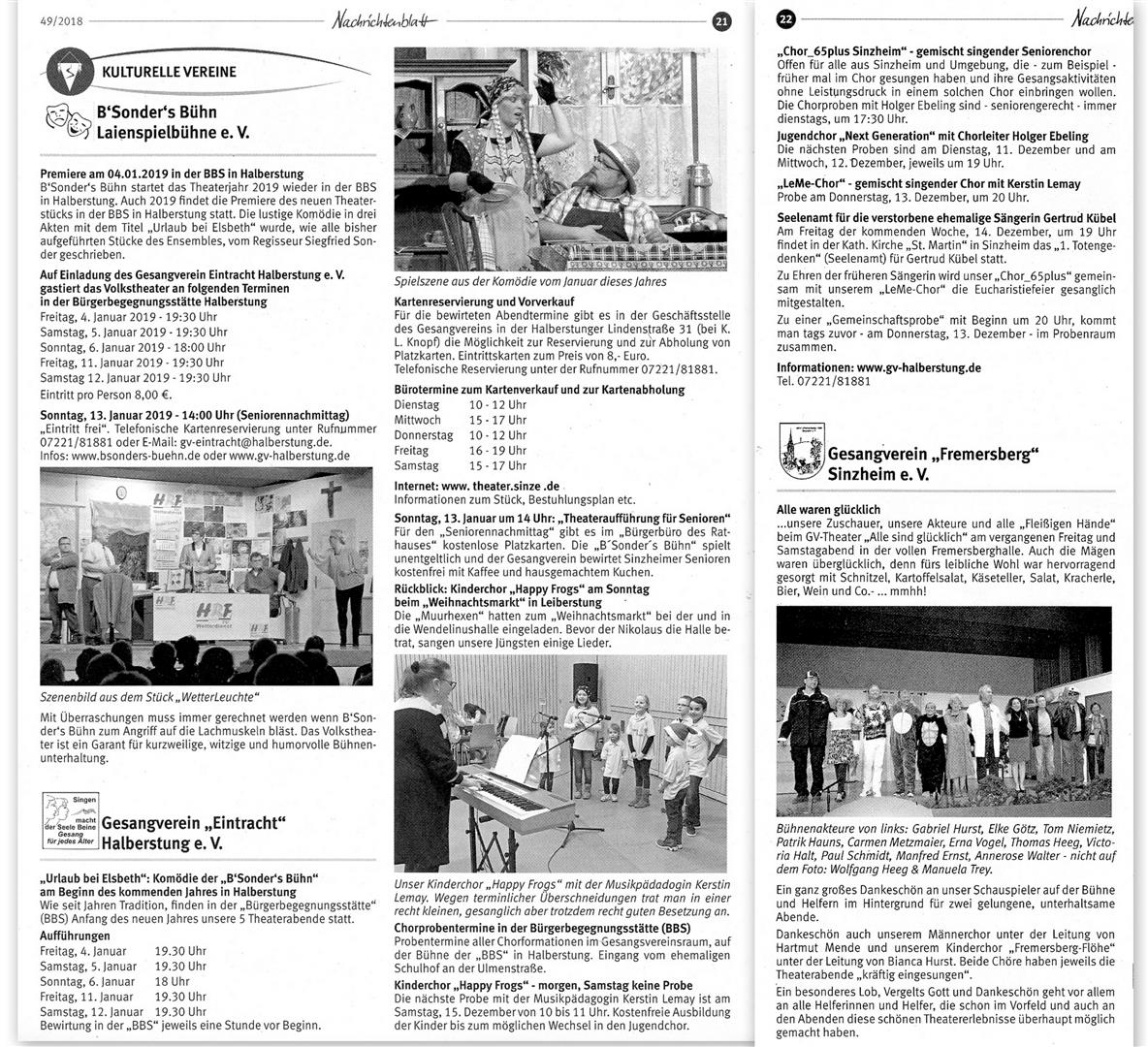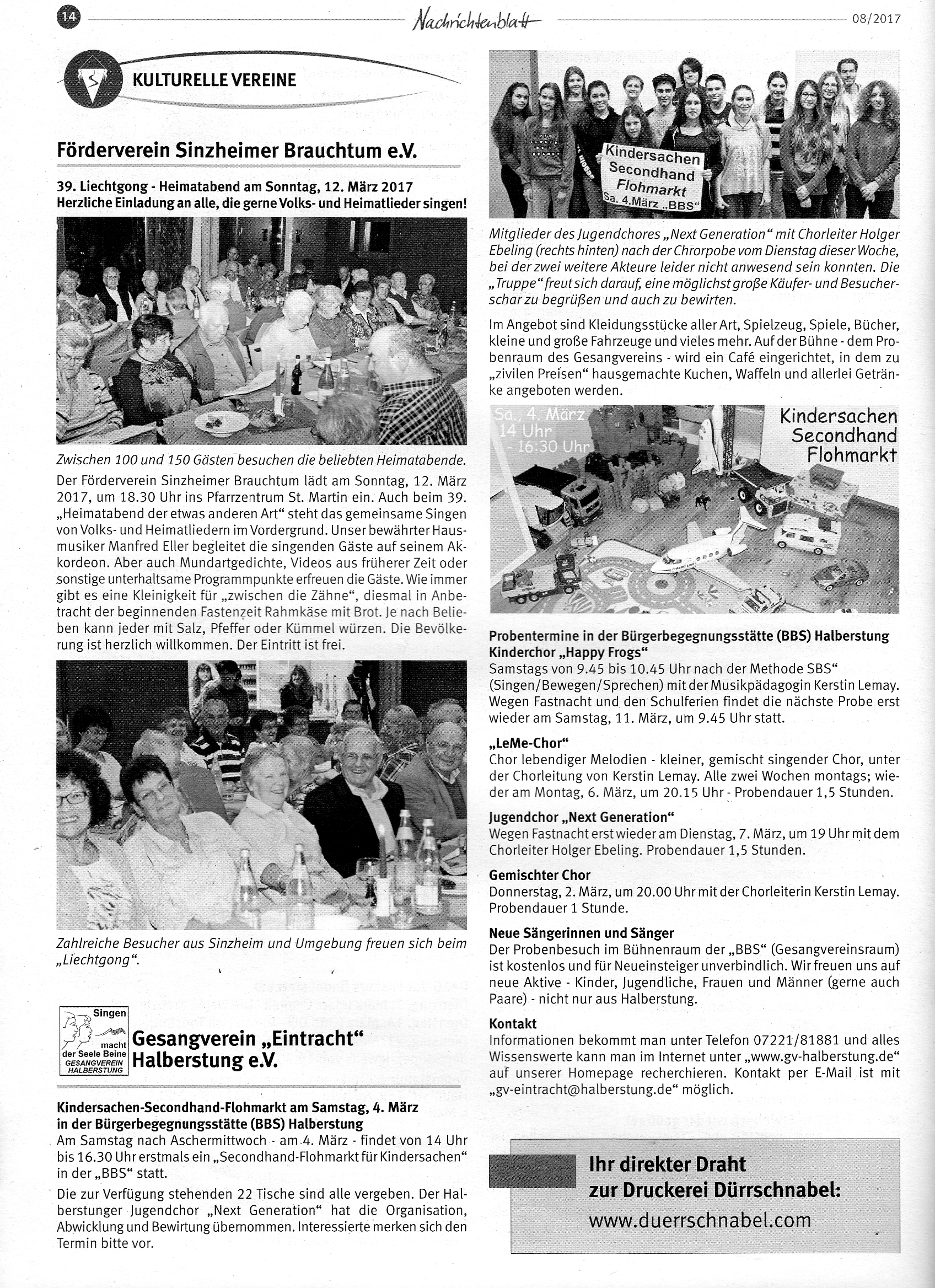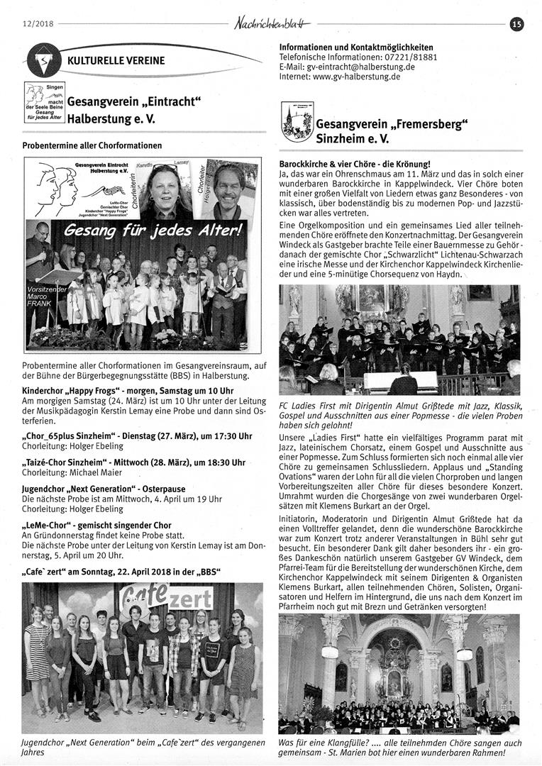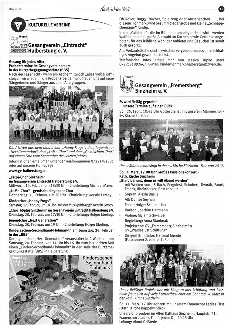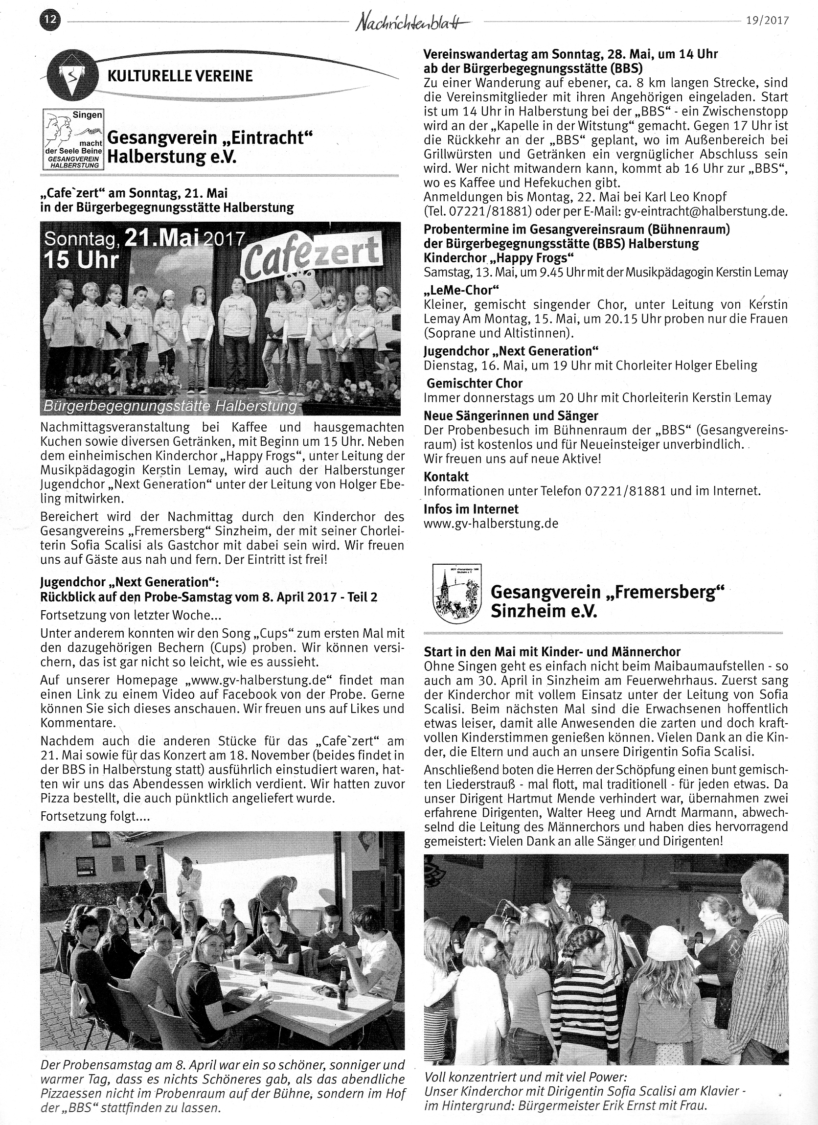 Veröffentlichungen im NACHRICHTENBLATT der Gemeinde Sinzheim