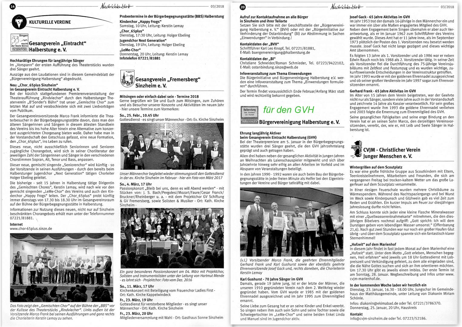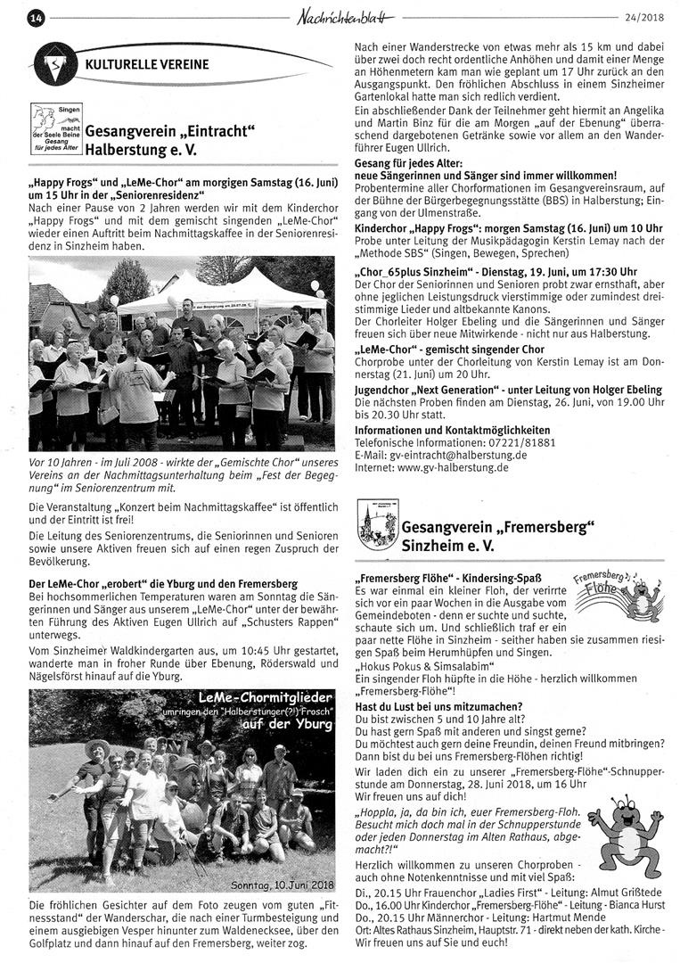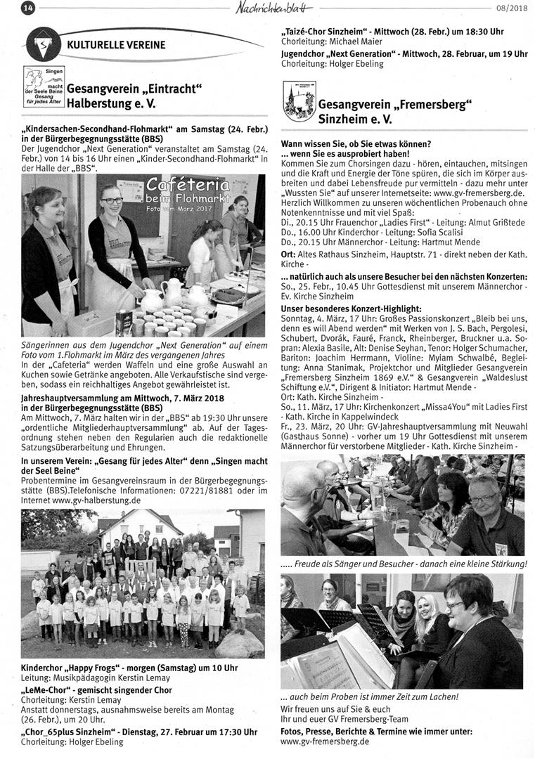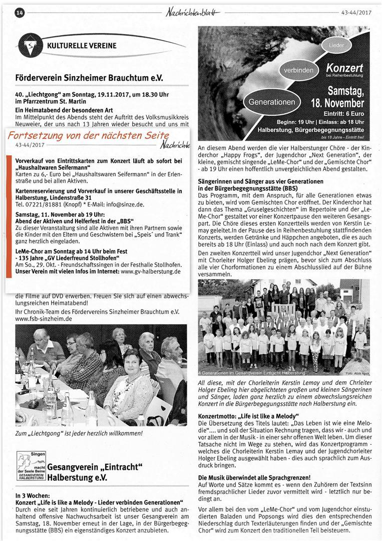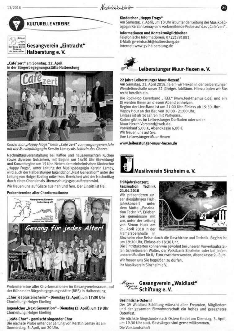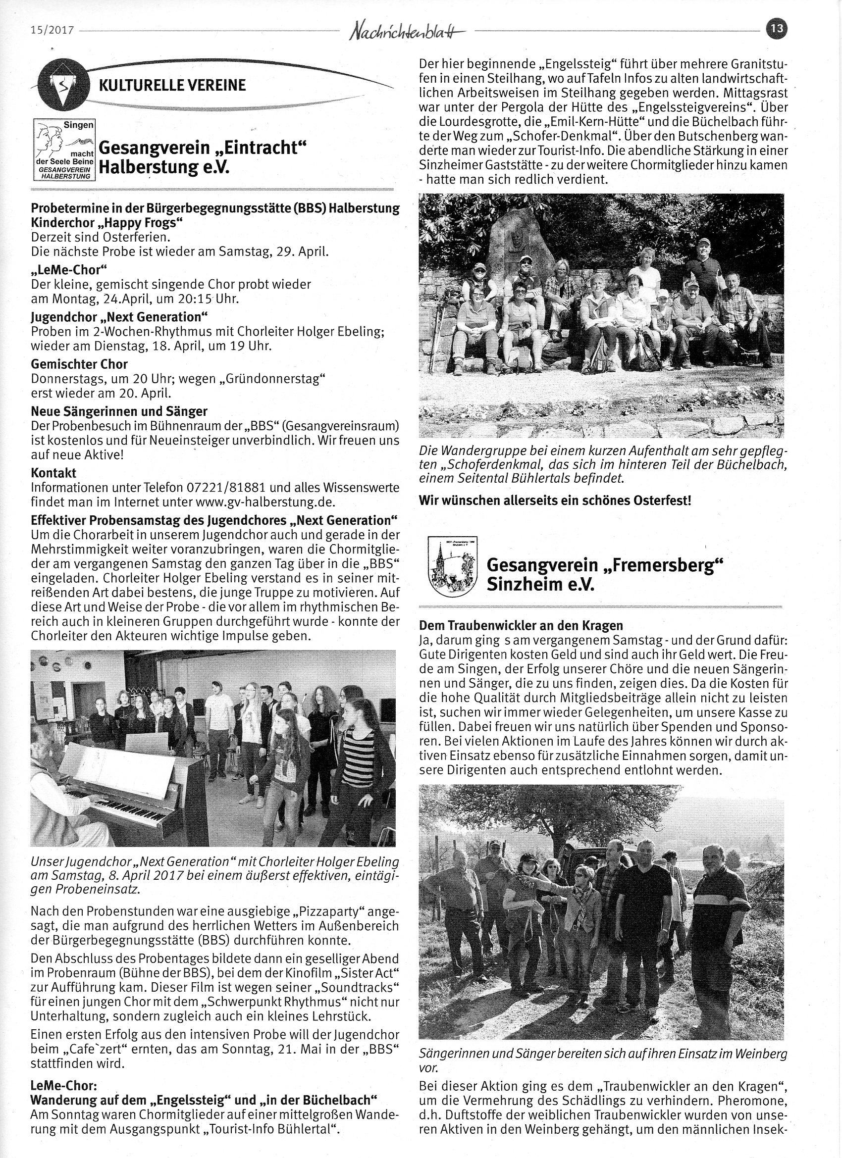 Veröffentlichungen im NACHRICHTENBLATT der Gemeinde Sinzheim