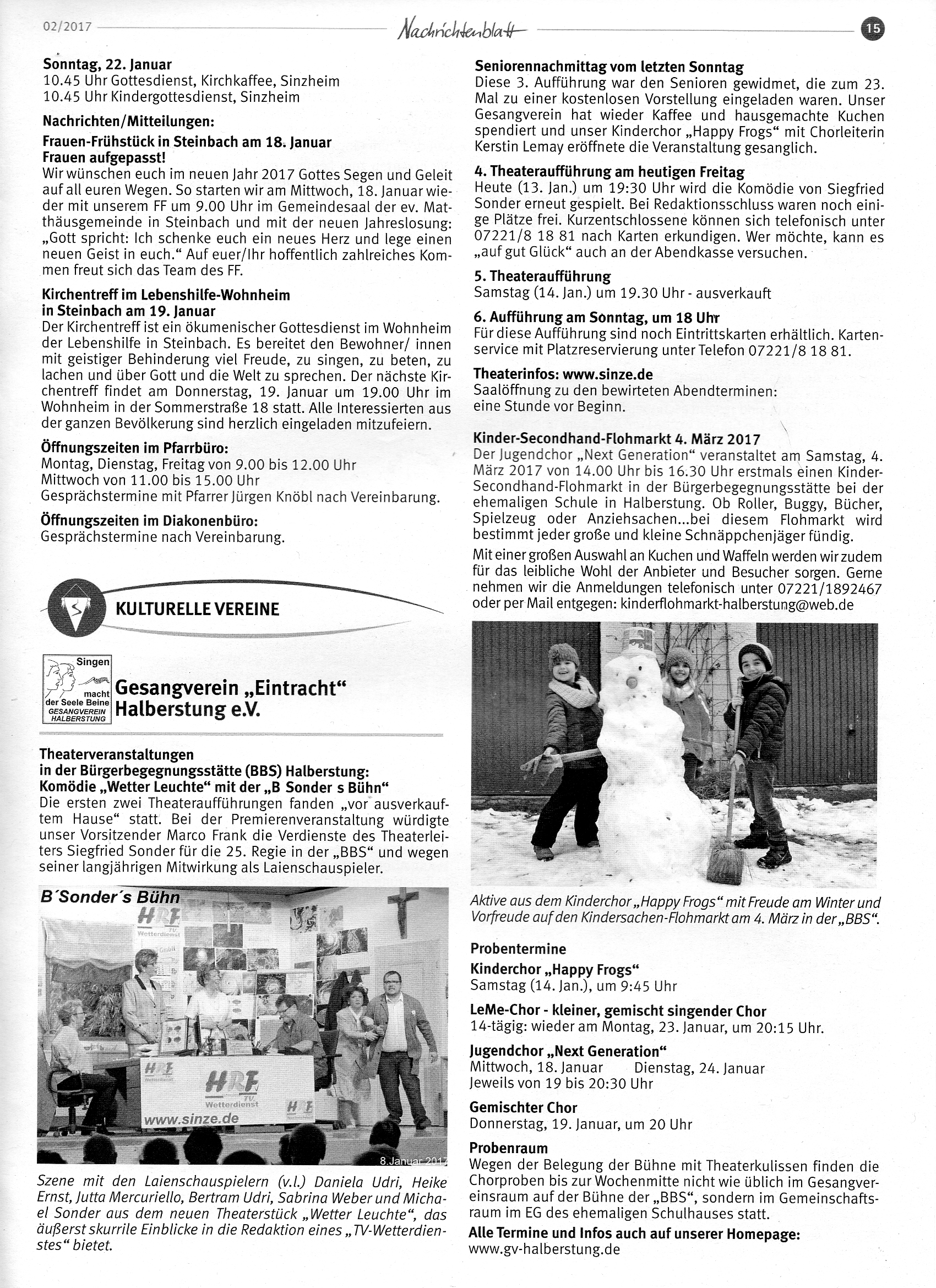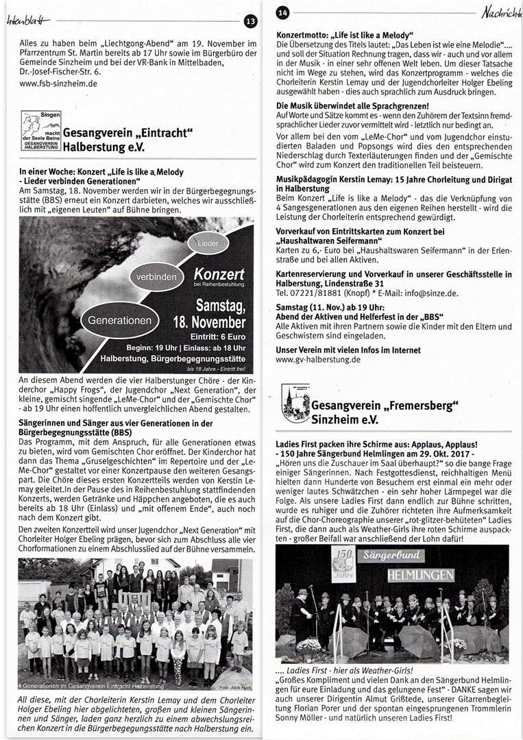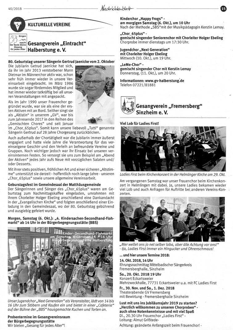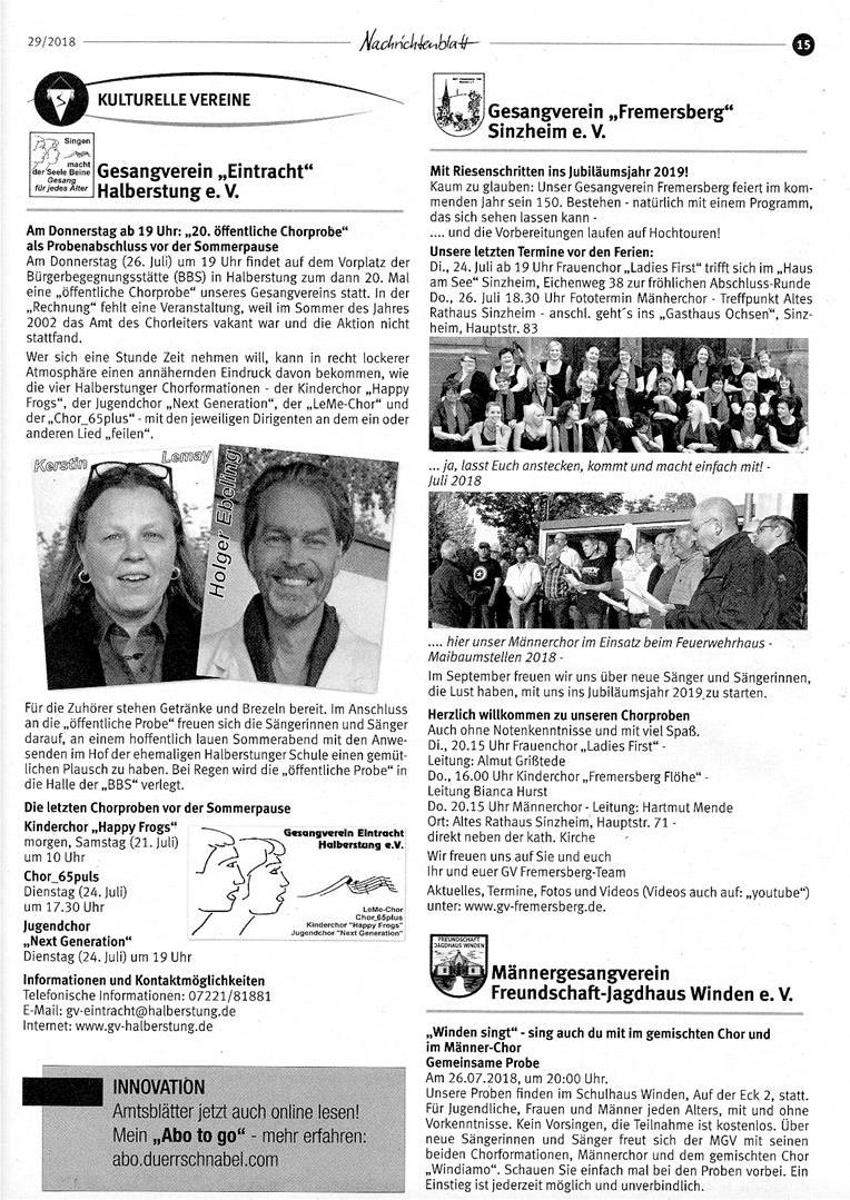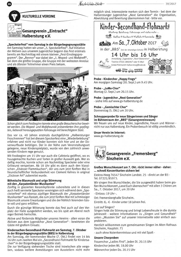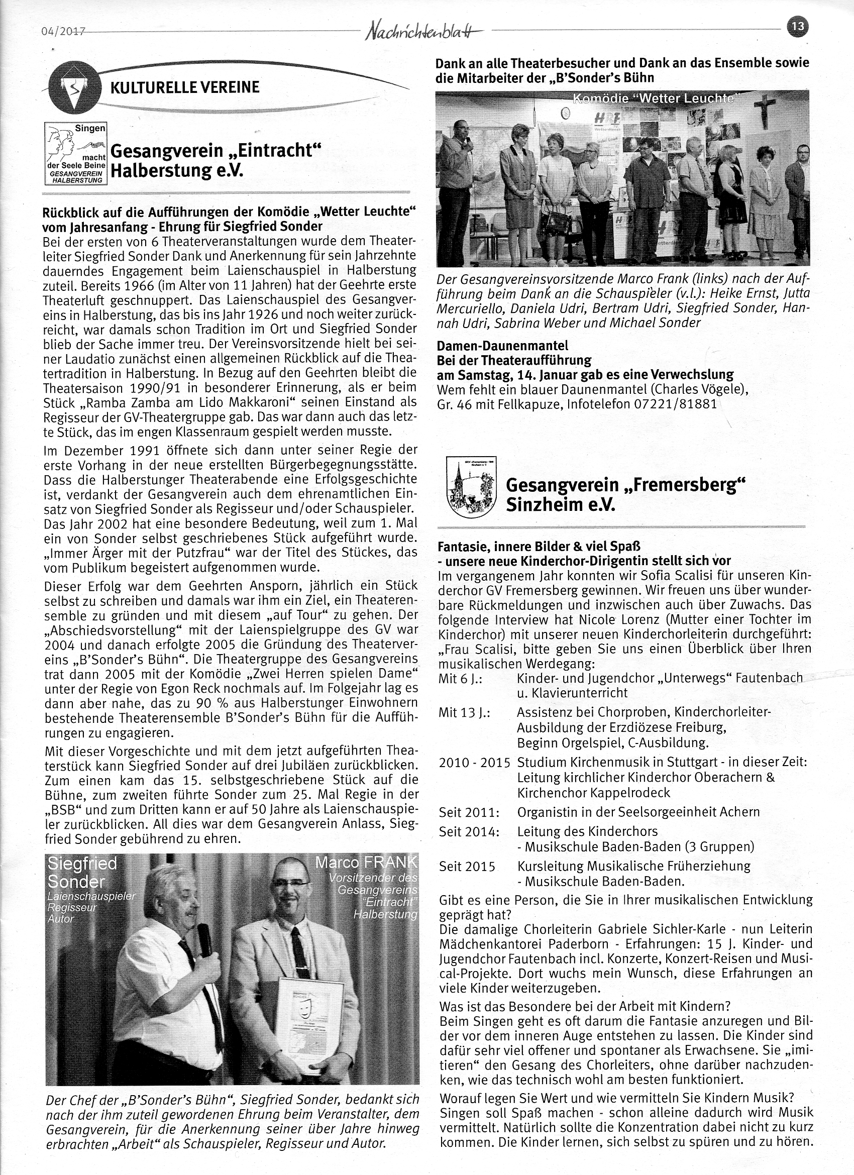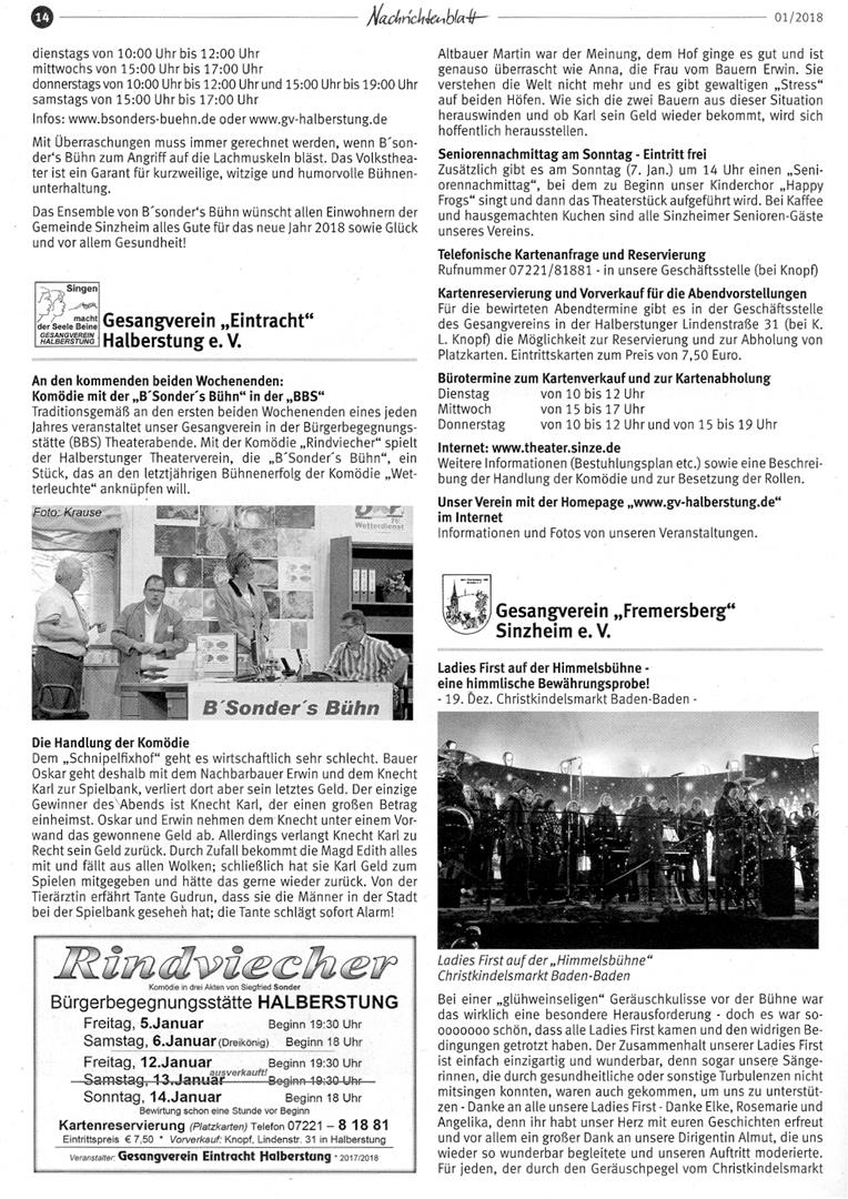 Veröffentlichungen im NACHRICHTENBLATT der Gemeinde Sinzheim