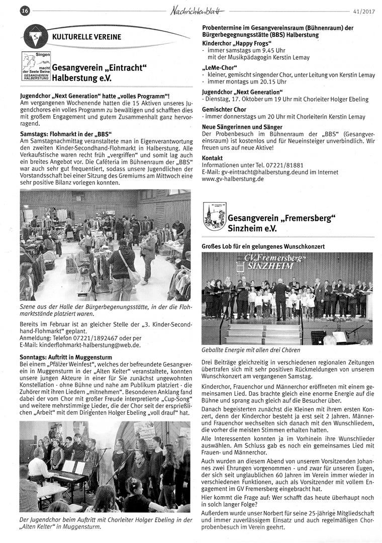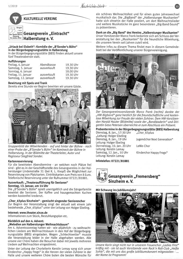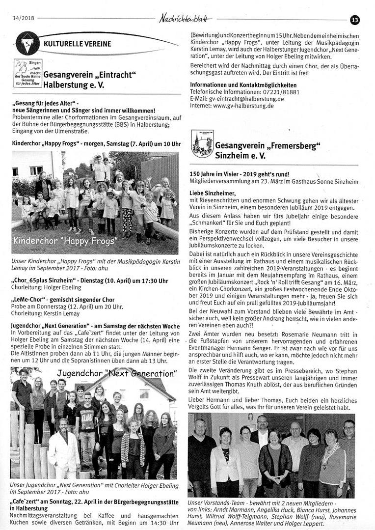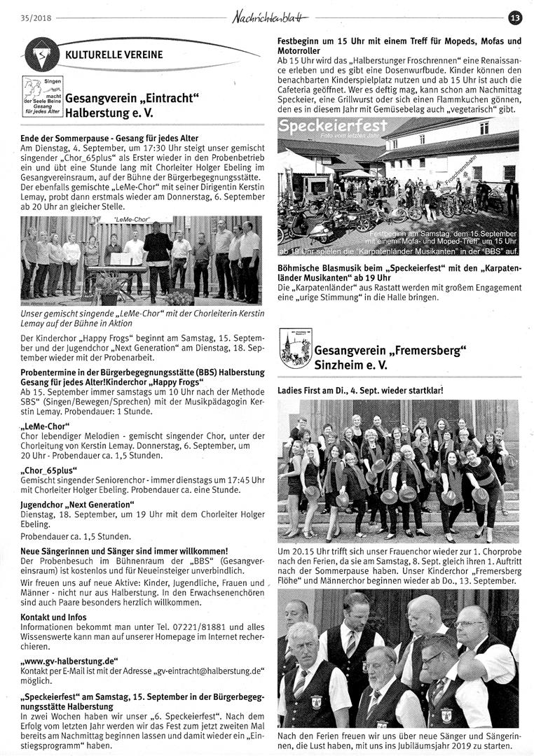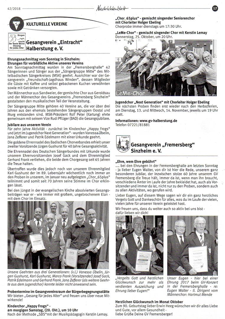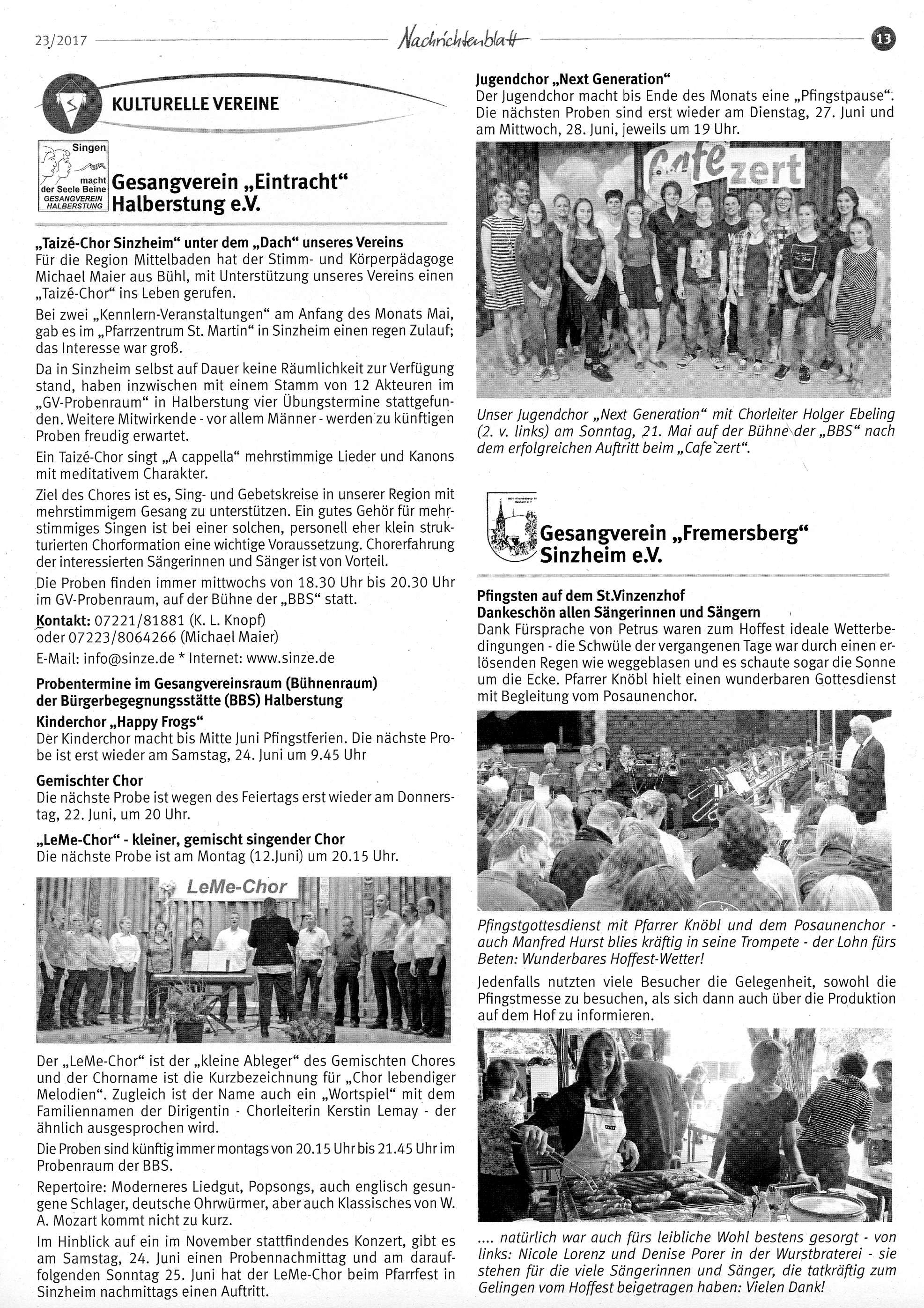 Veröffentlichungen im NACHRICHTENBLATT der Gemeinde Sinzheim