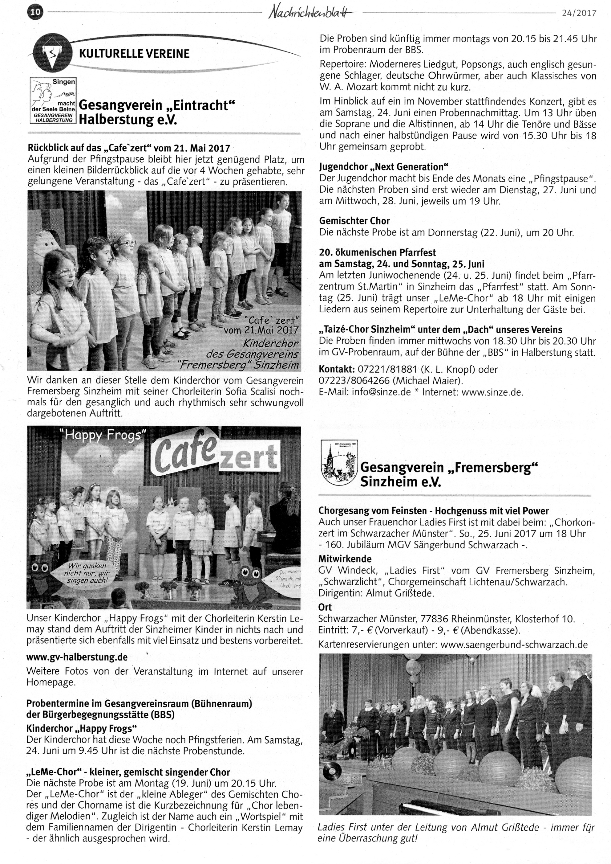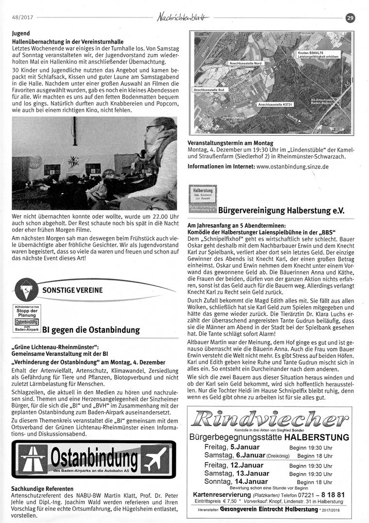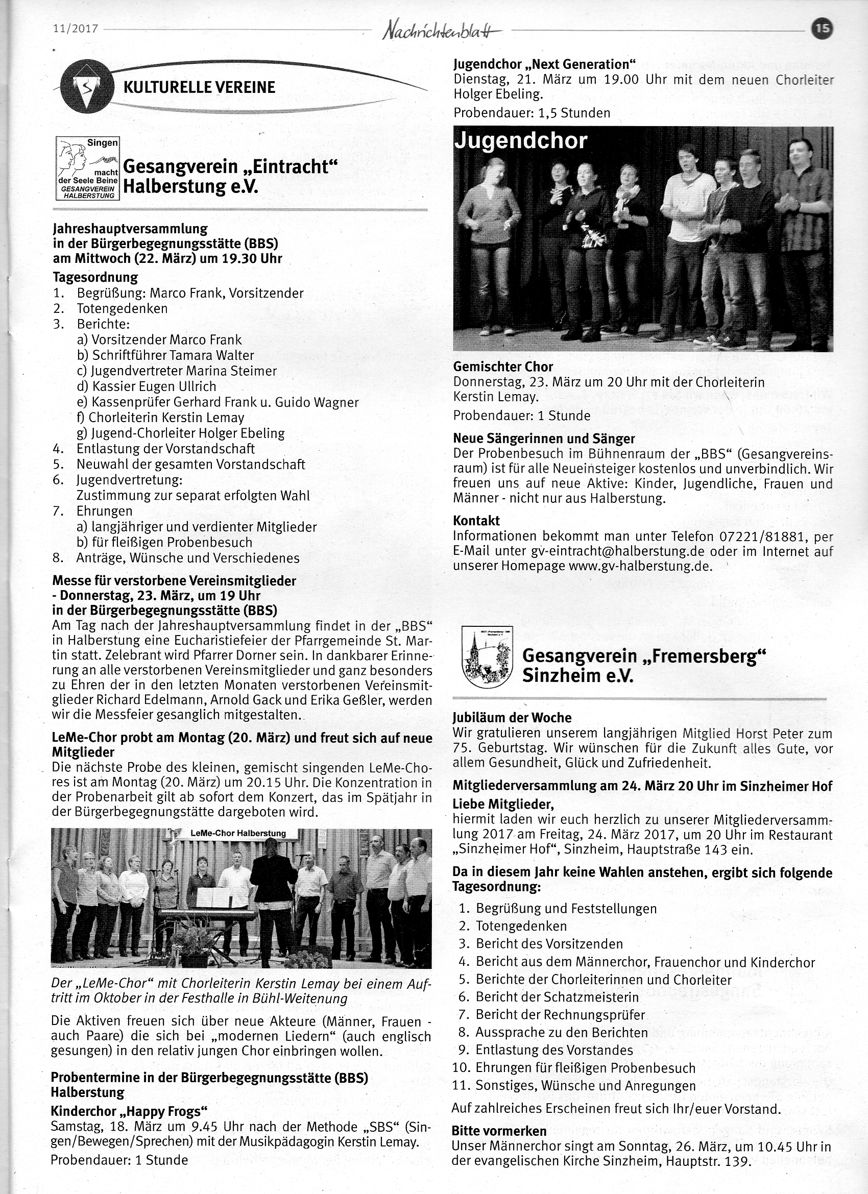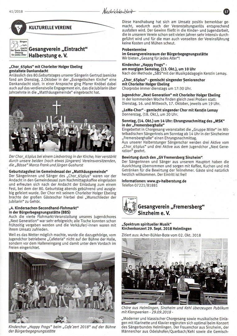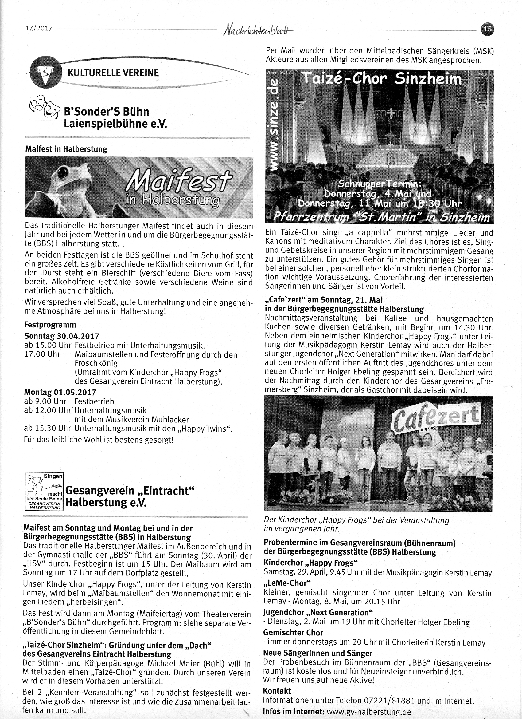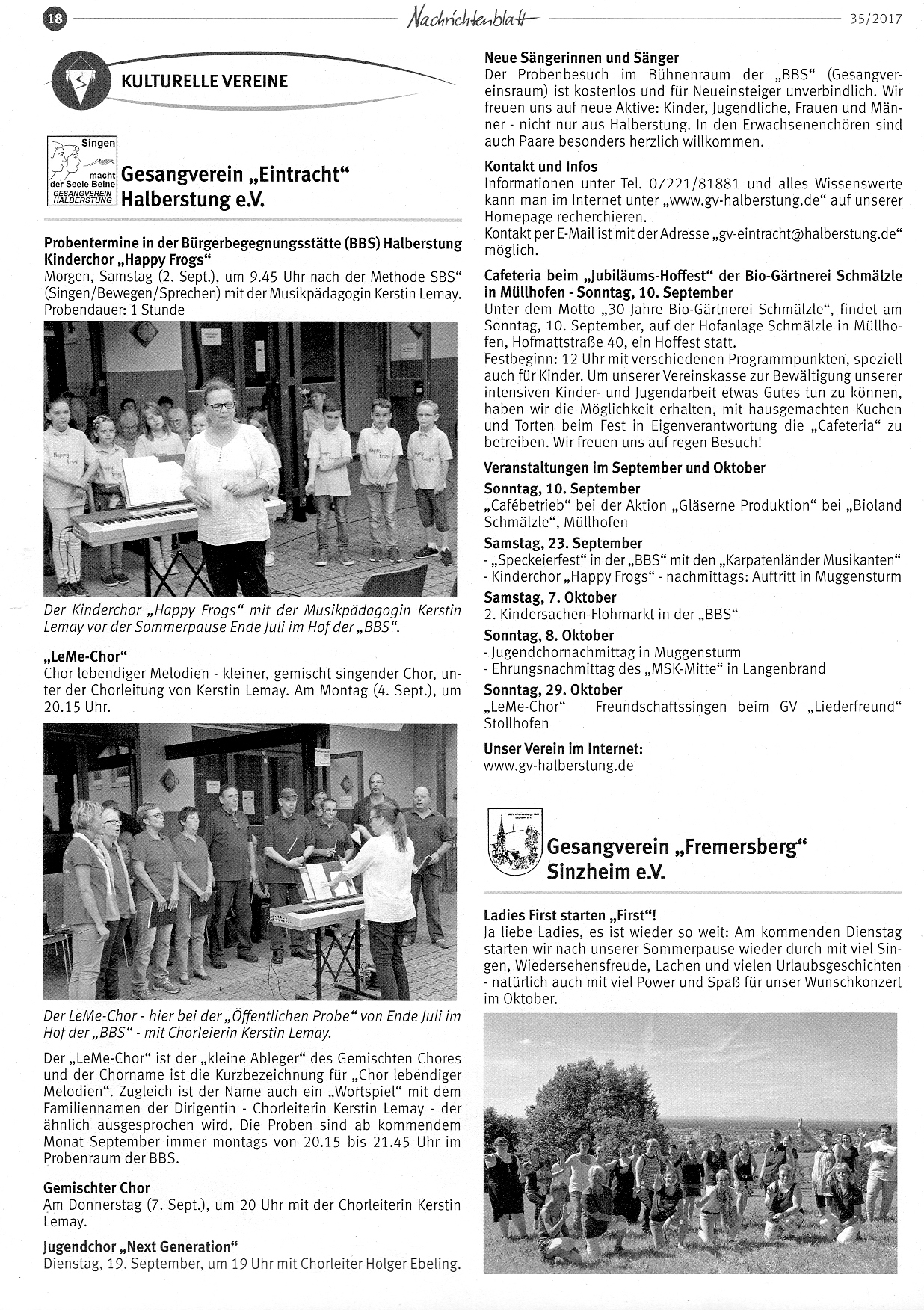 Veröffentlichungen im NACHRICHTENBLATT der Gemeinde Sinzheim
