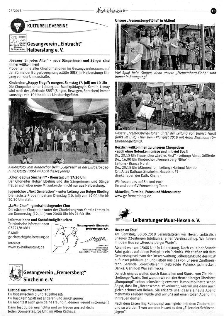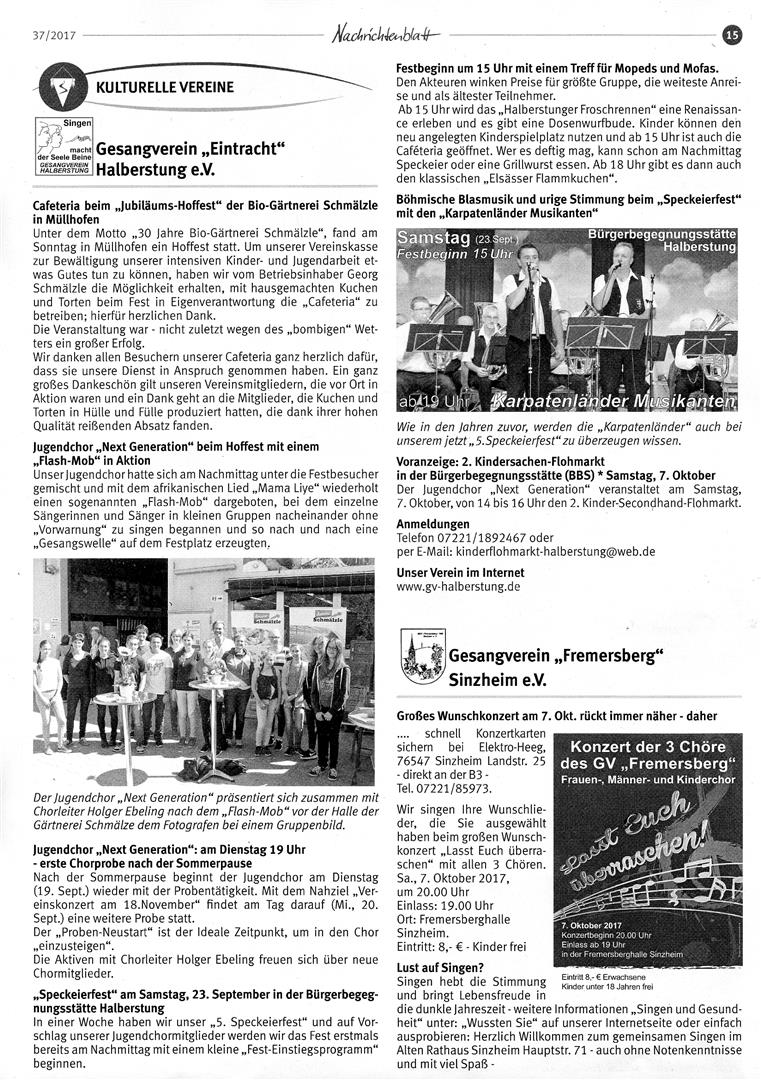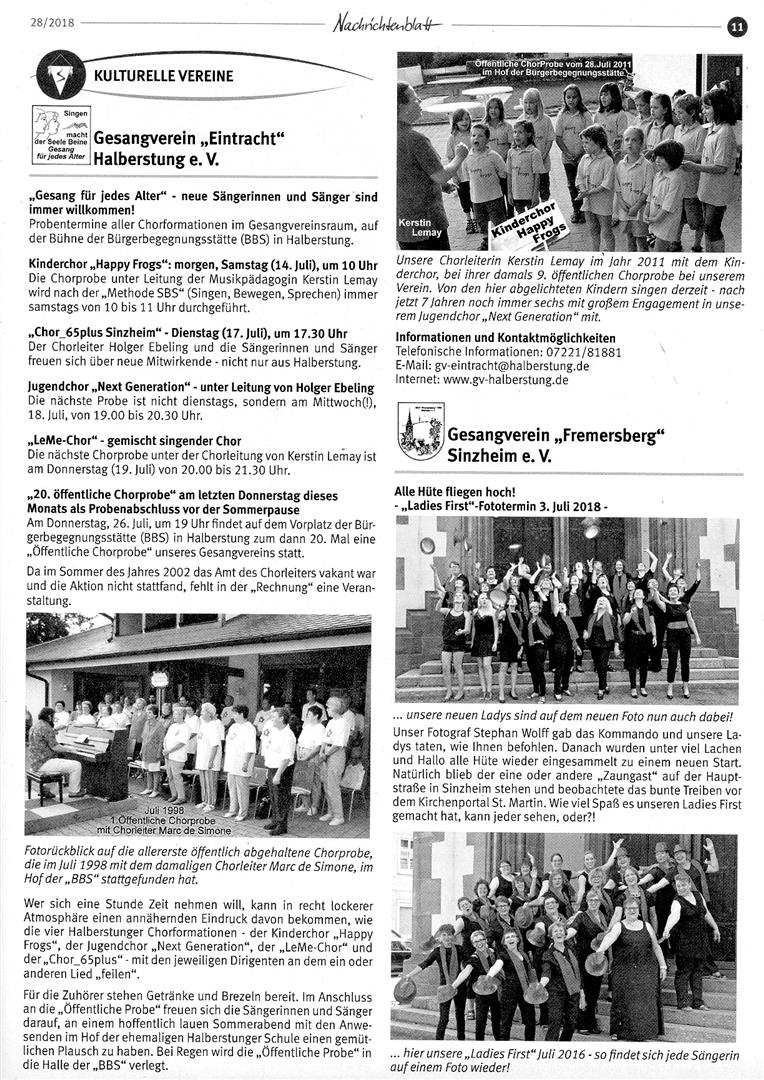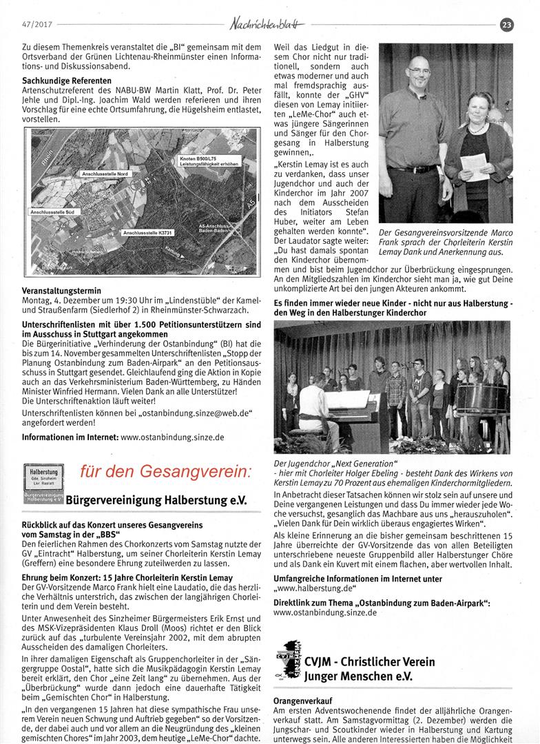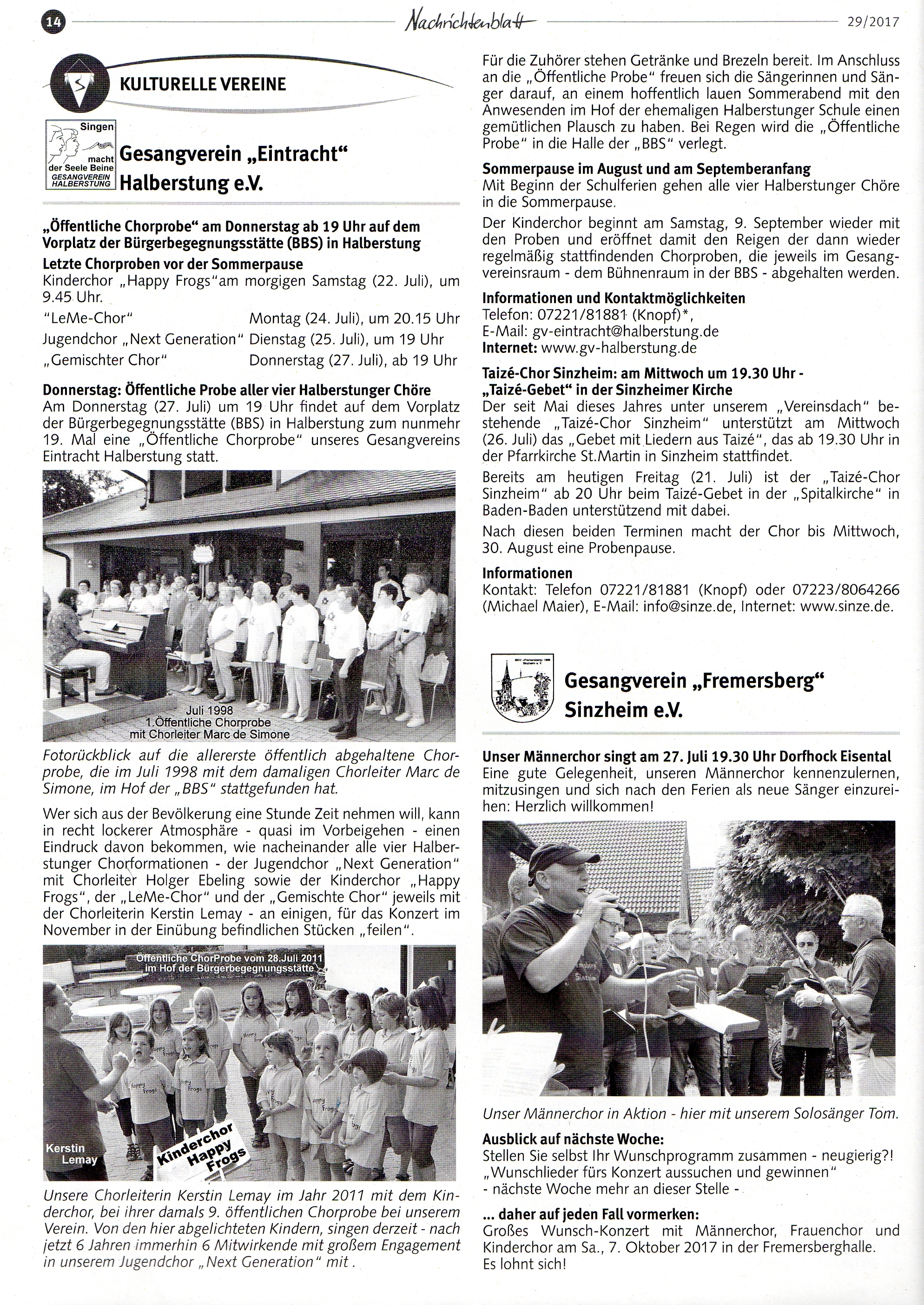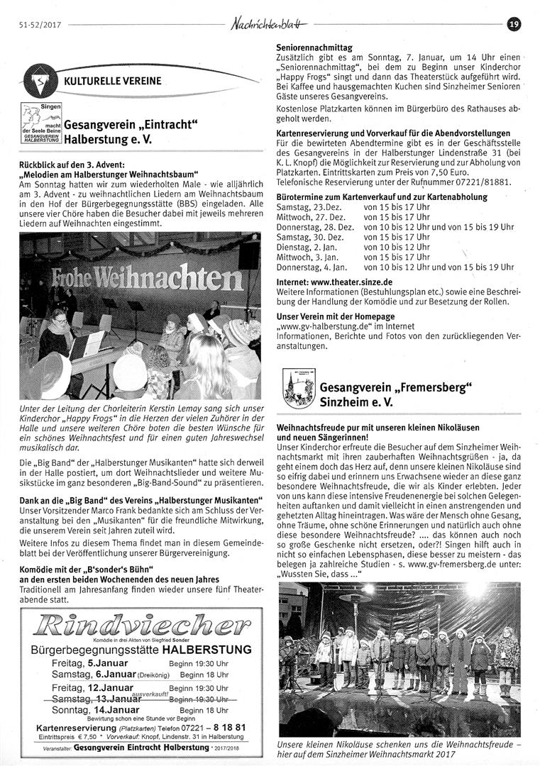 Veröffentlichungen im NACHRICHTENBLATT der Gemeinde Sinzheim