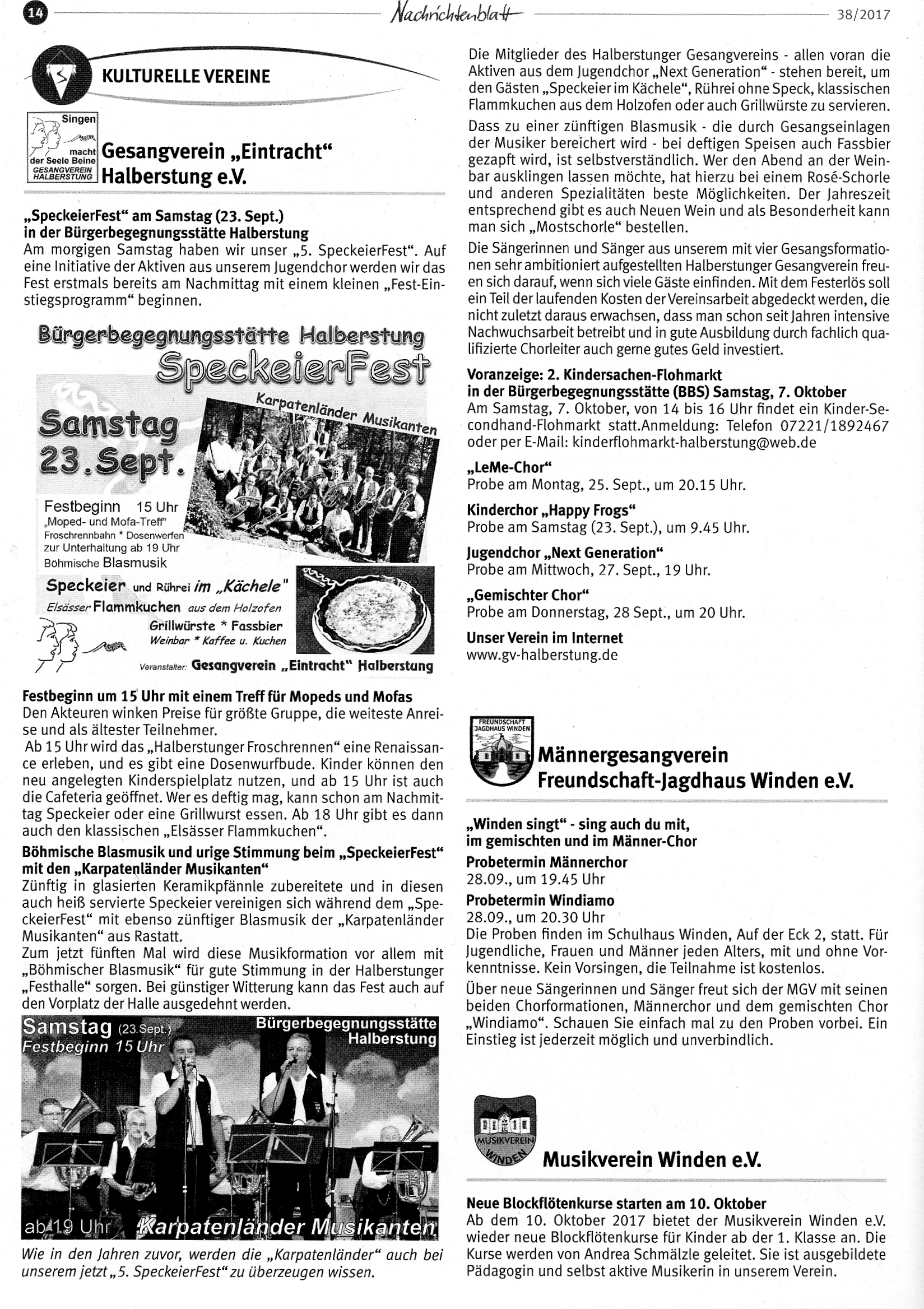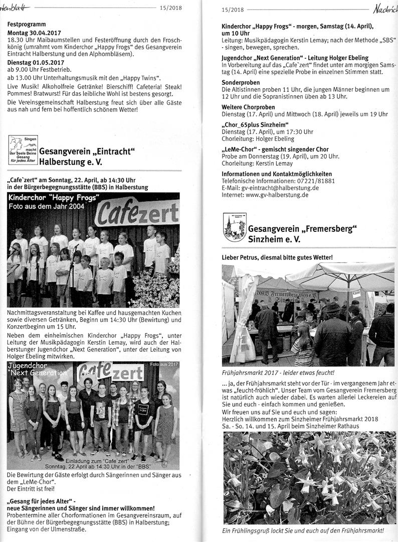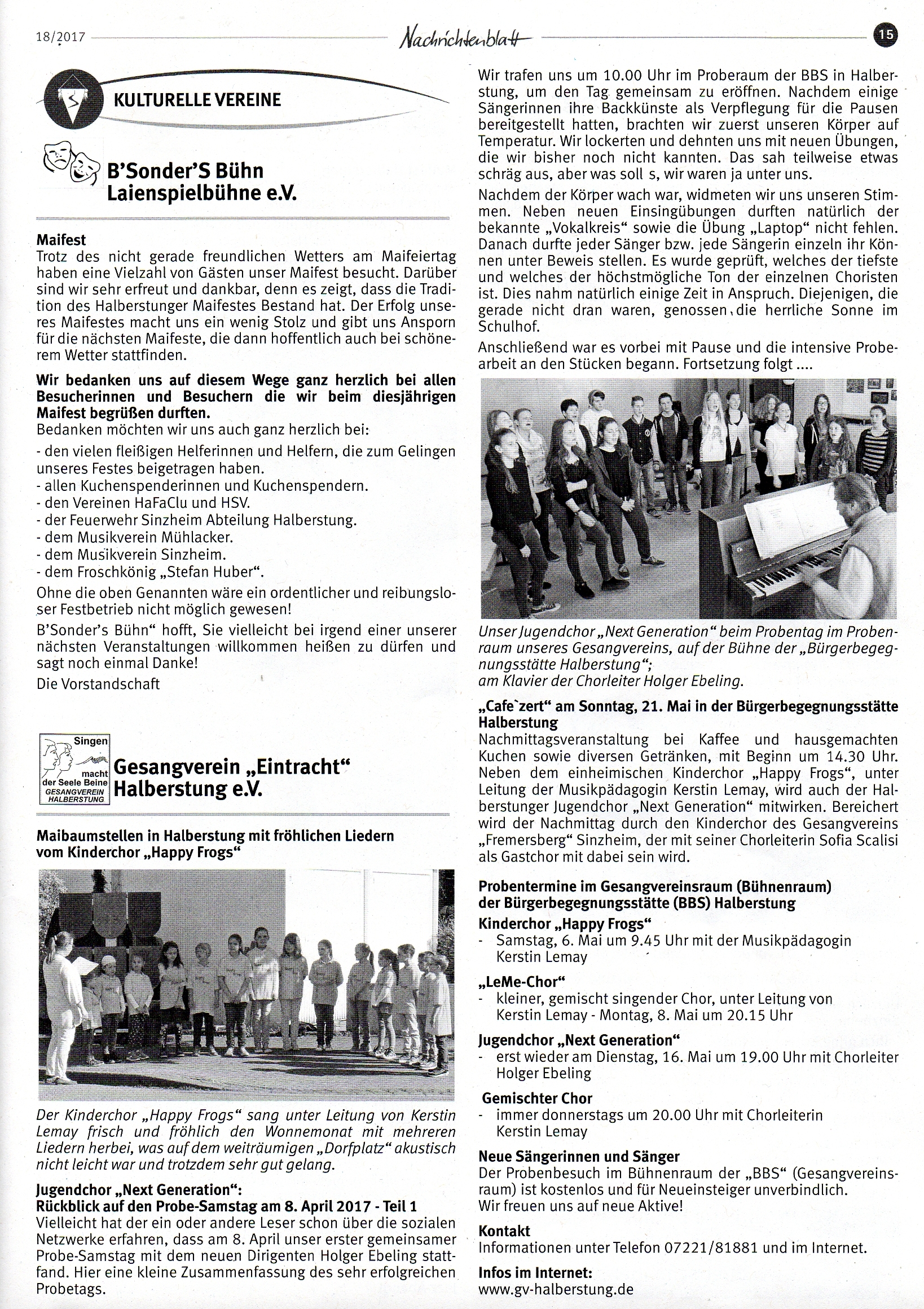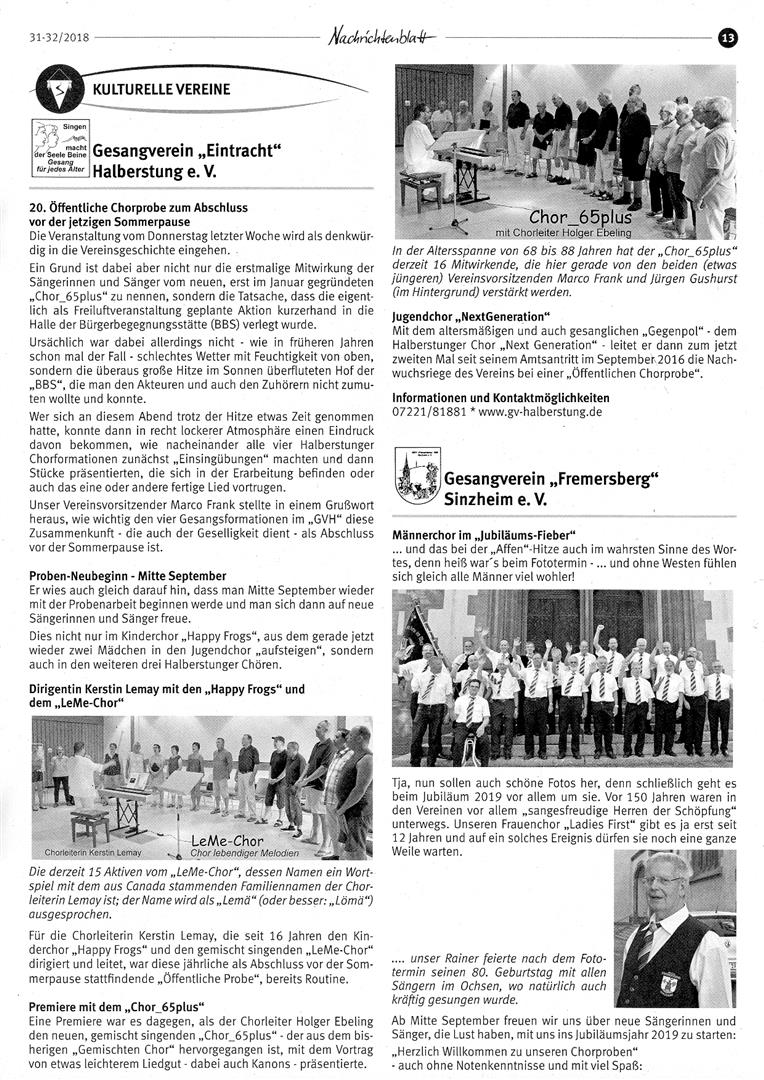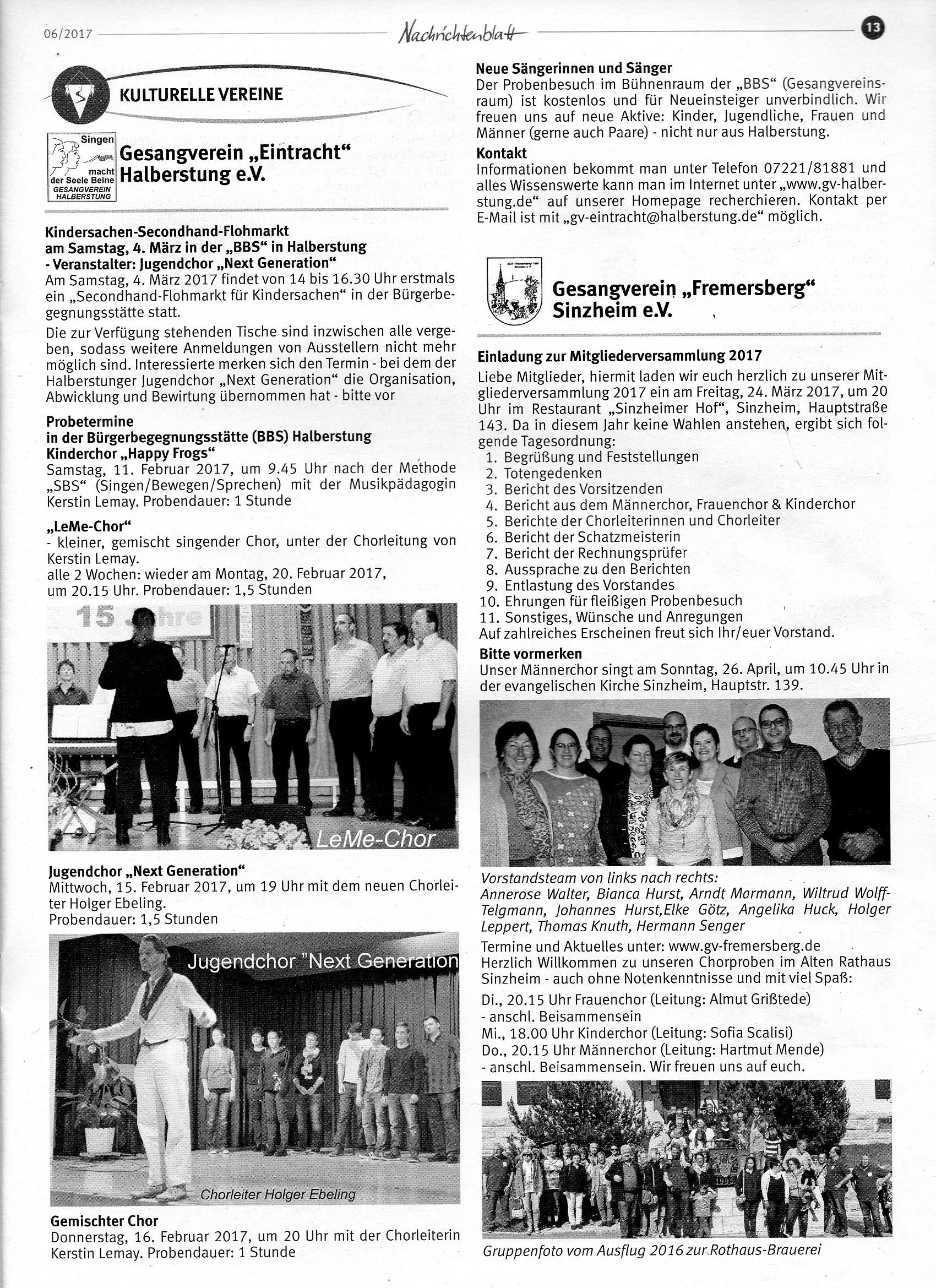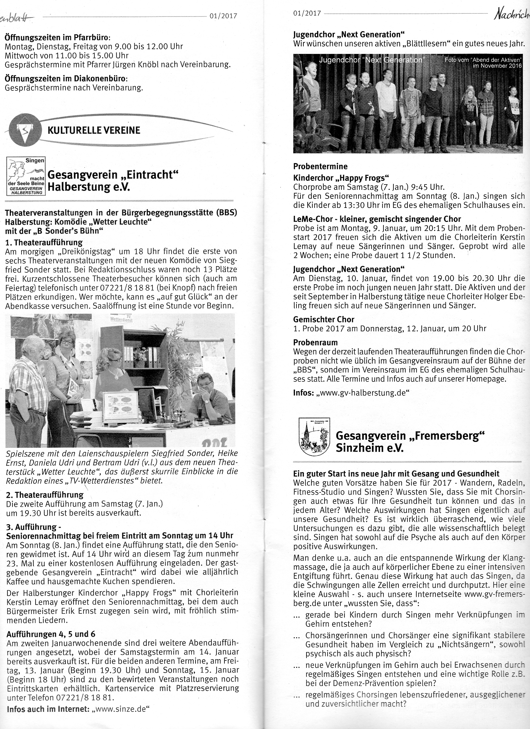 Veröffentlichungen im NACHRICHTENBLATT der Gemeinde Sinzheim