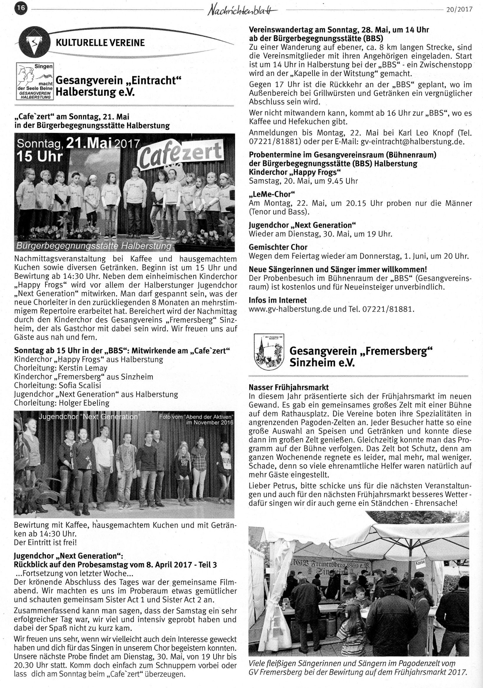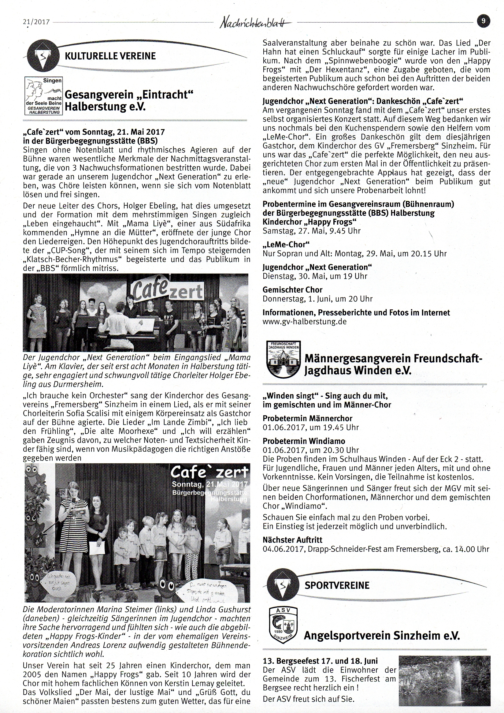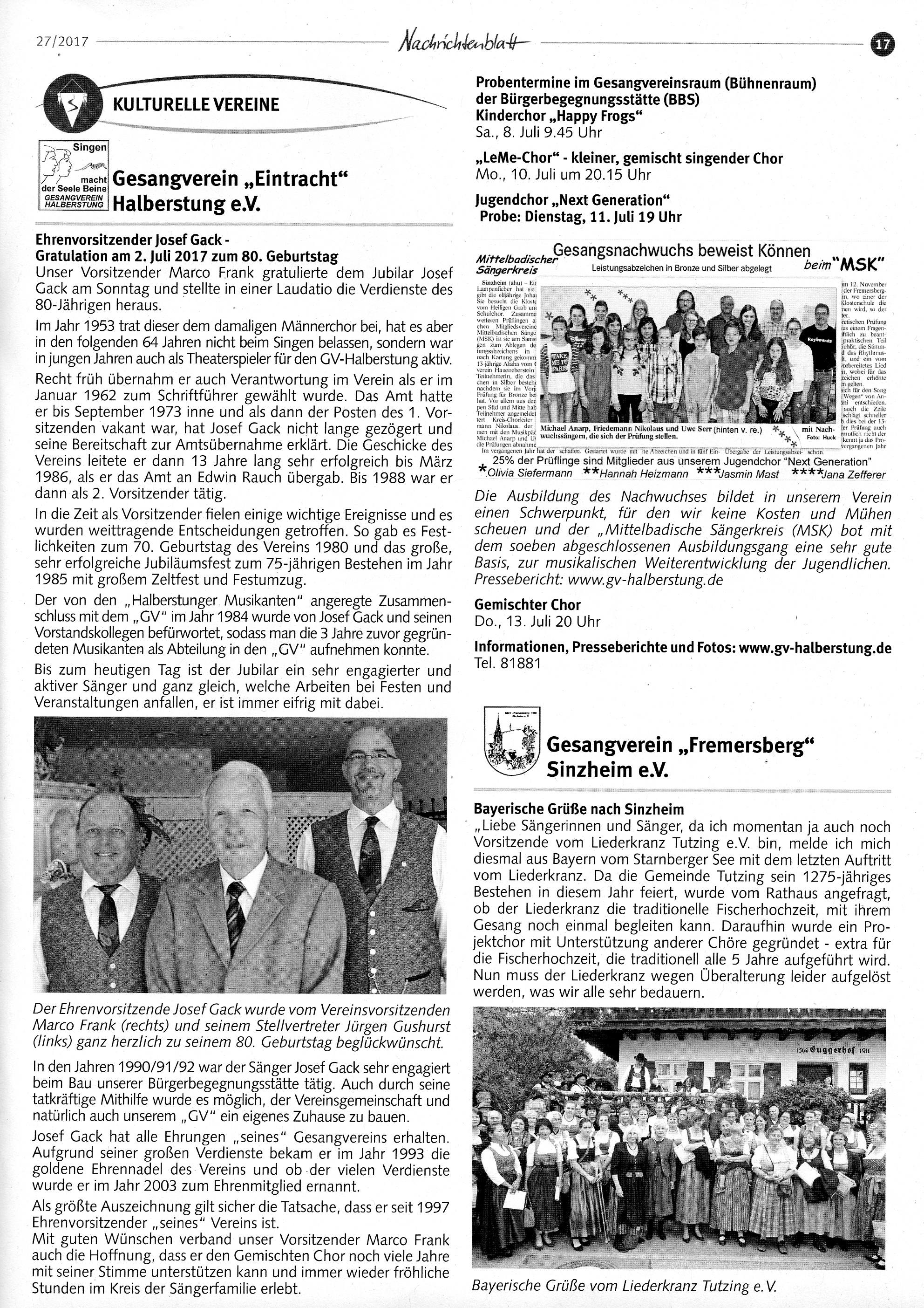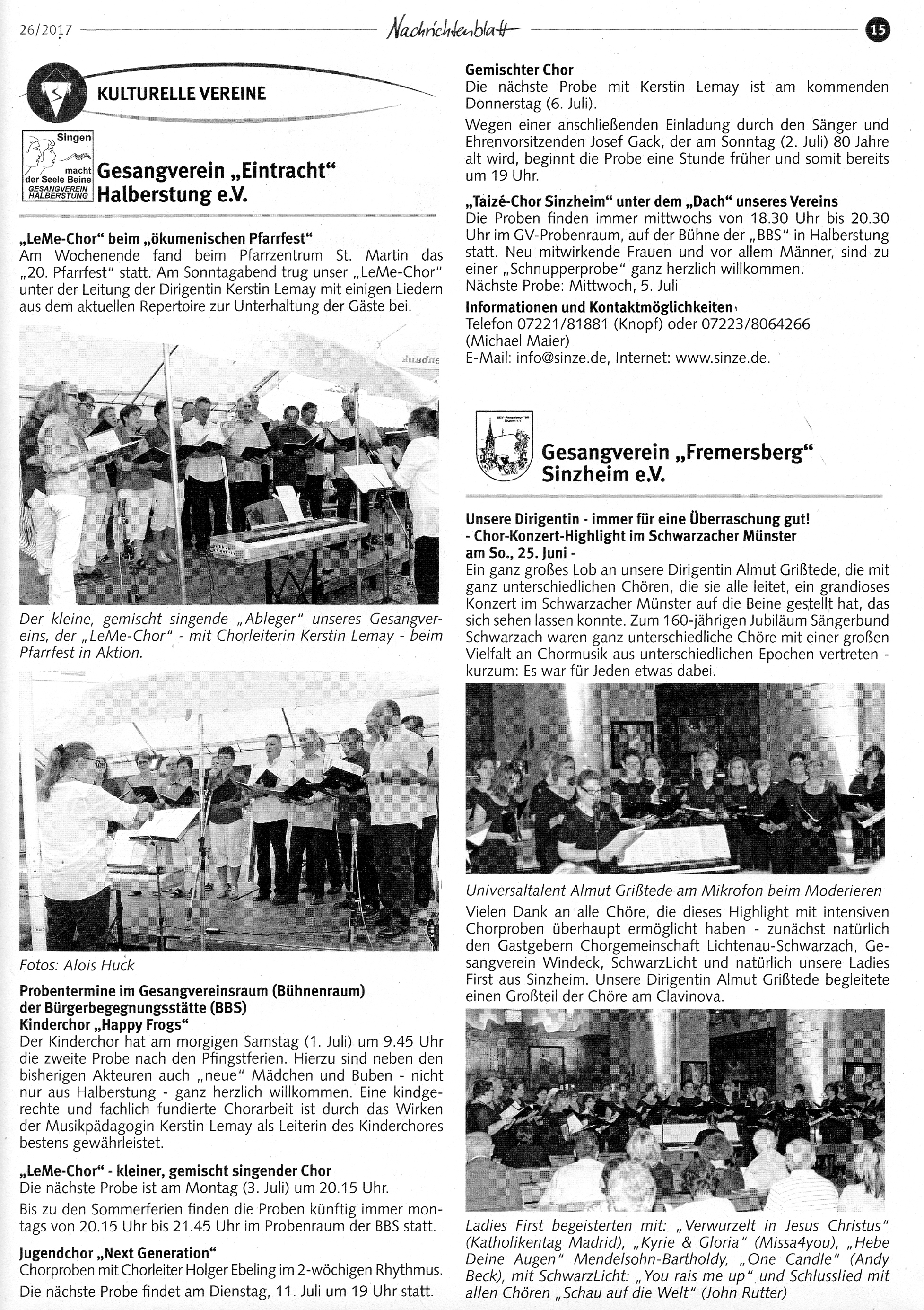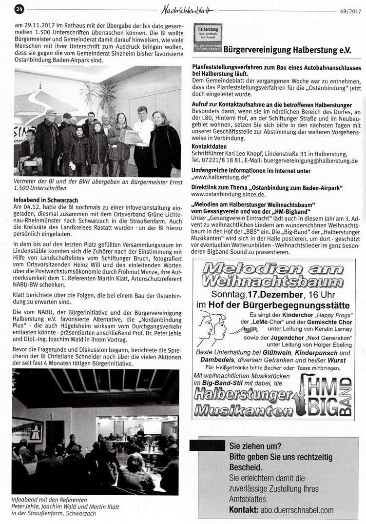 Veröffentlichungen im NACHRICHTENBLATT der Gemeinde Sinzheim