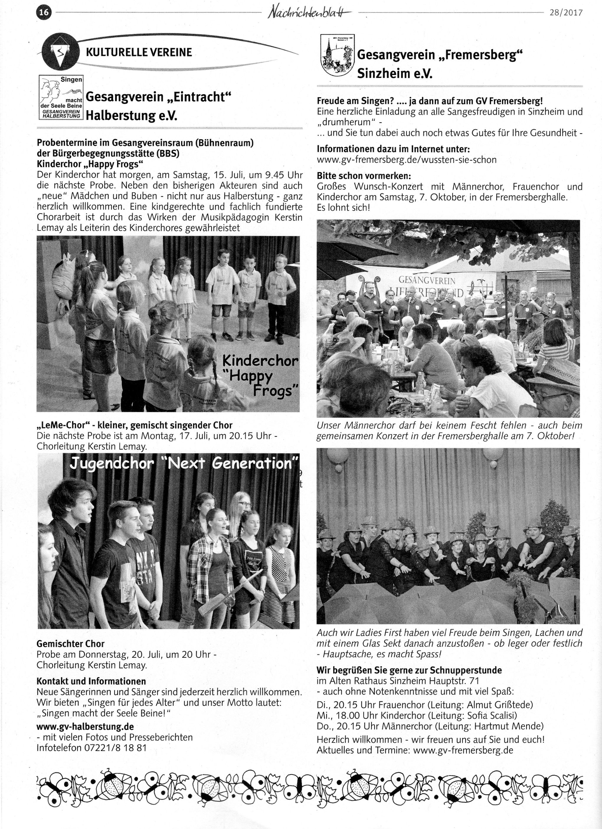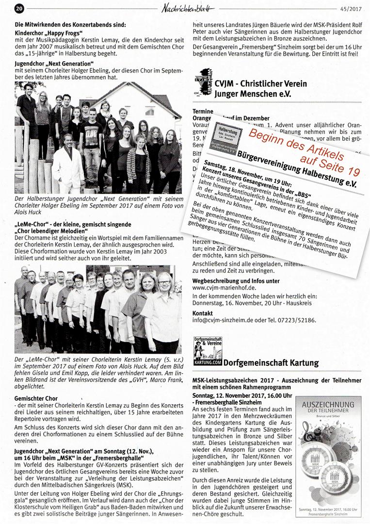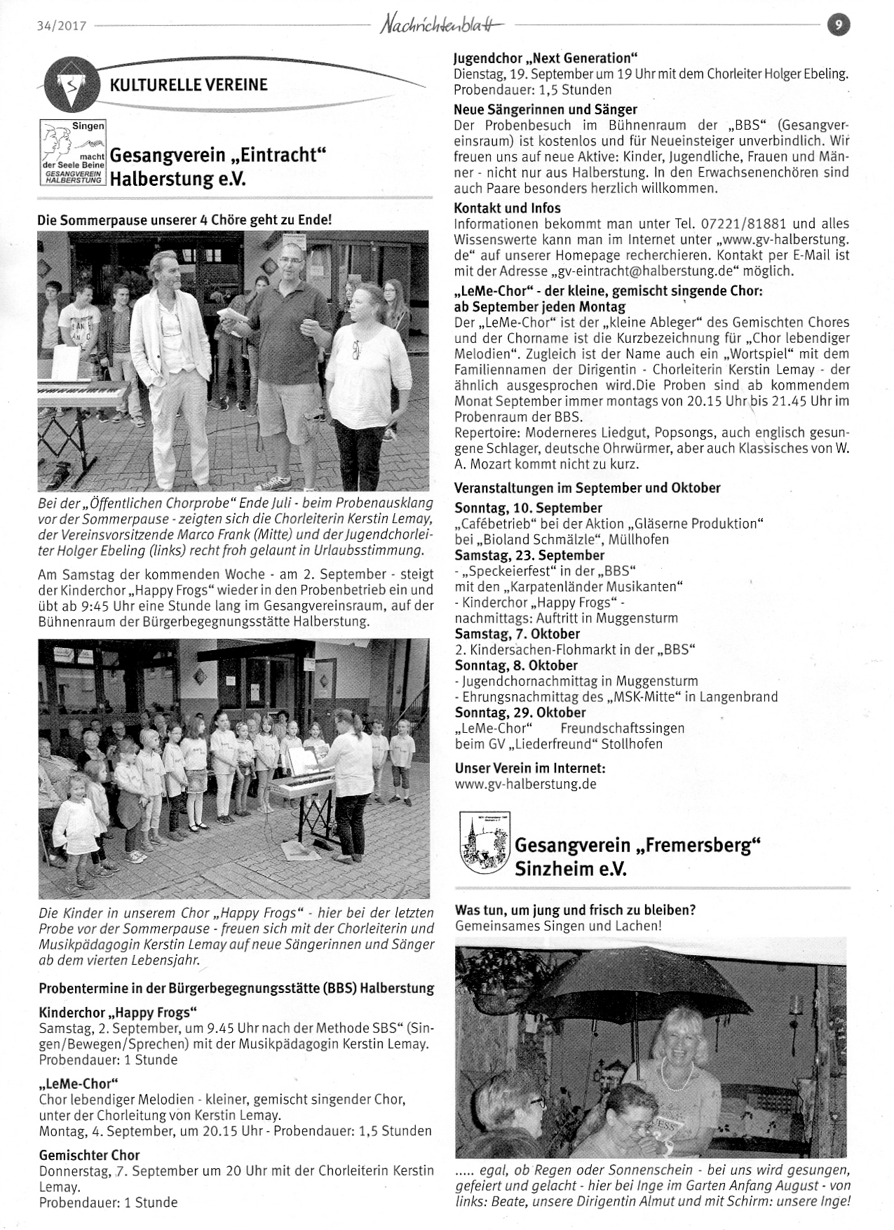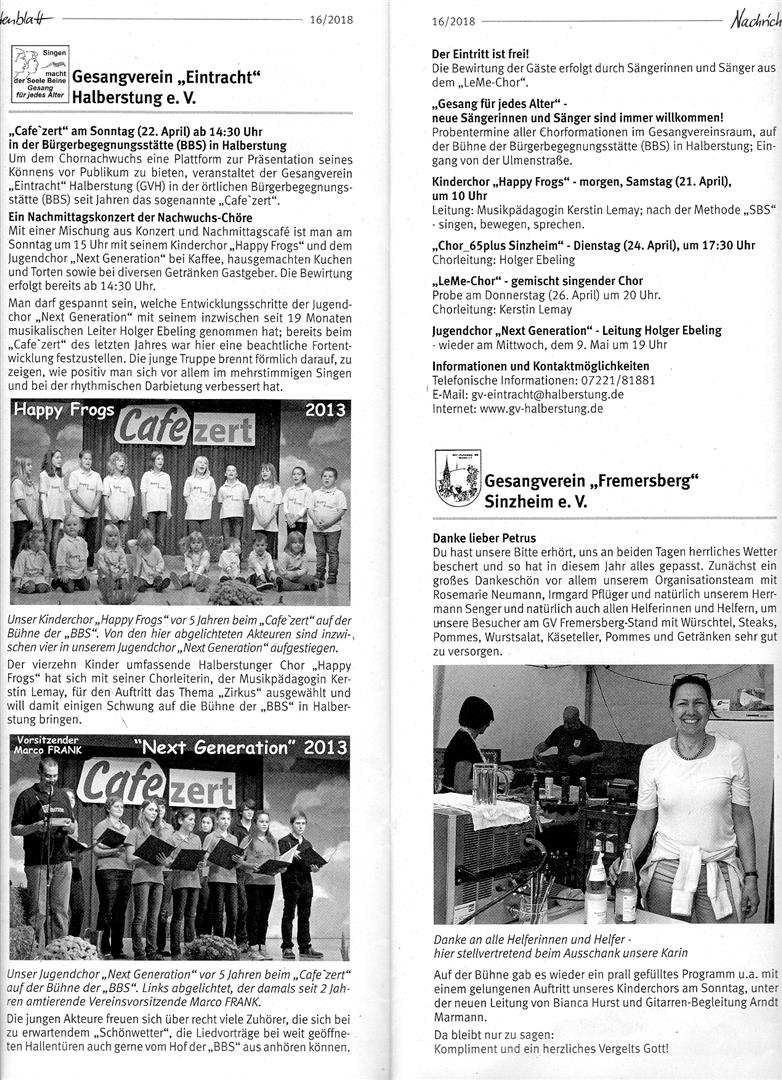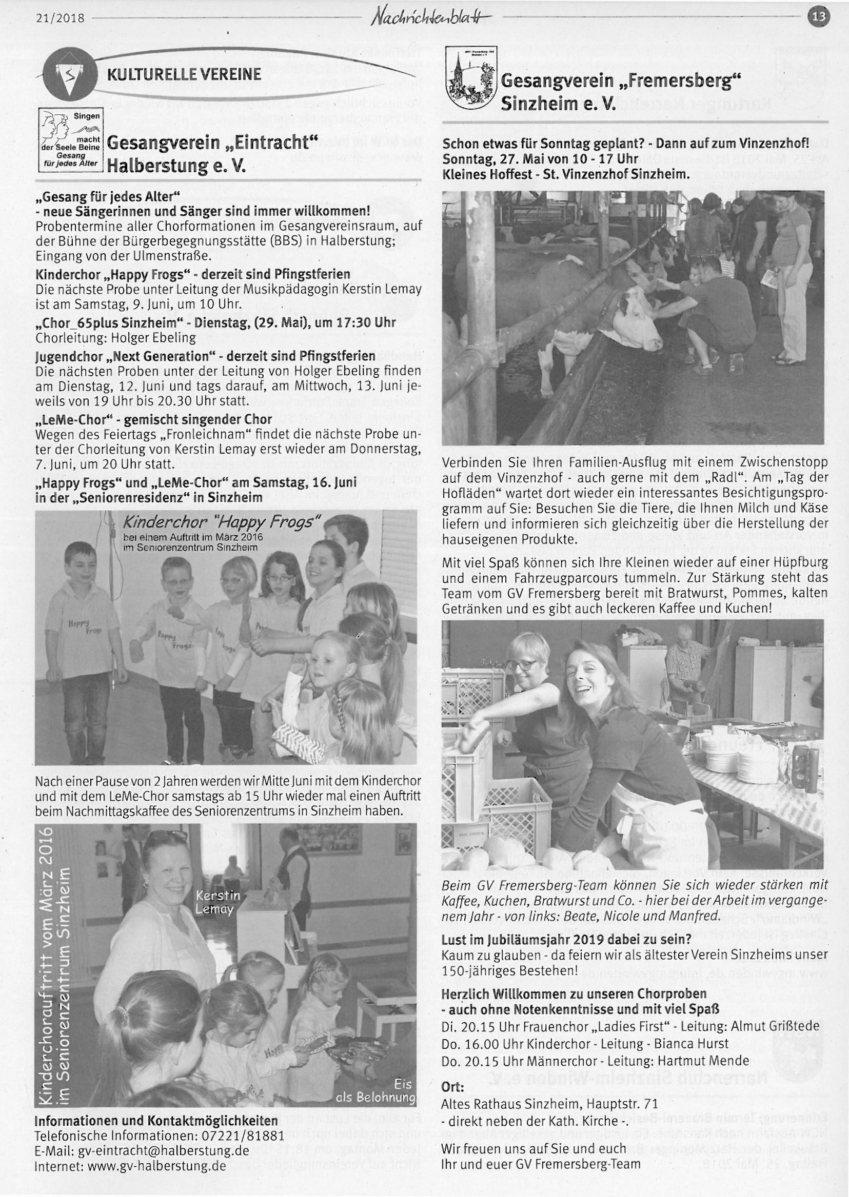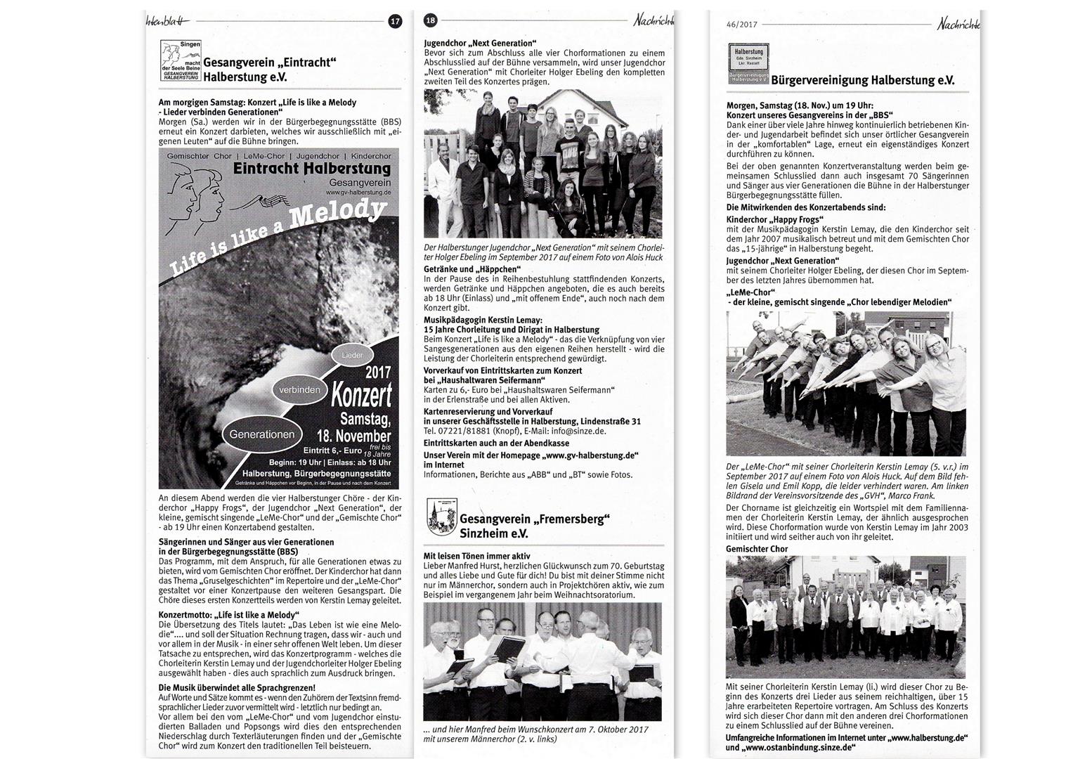 Veröffentlichungen im NACHRICHTENBLATT der Gemeinde Sinzheim