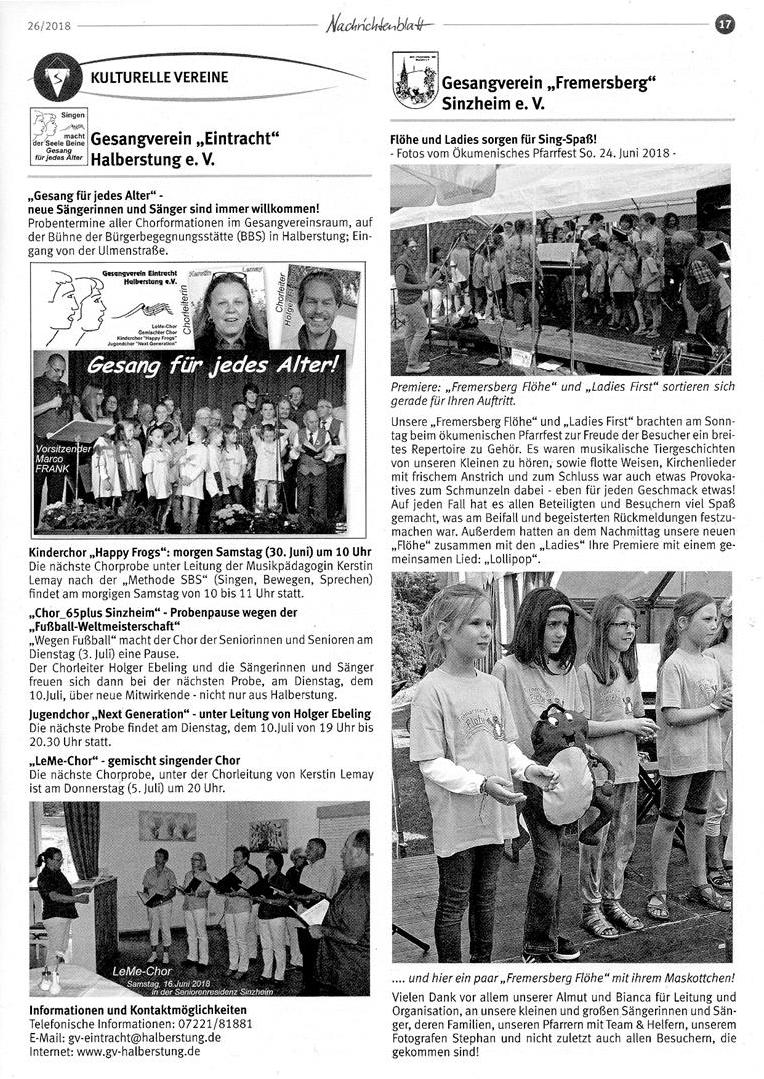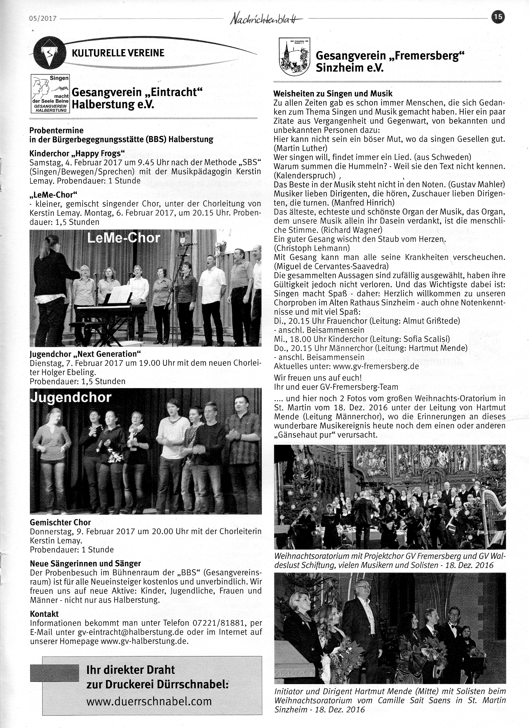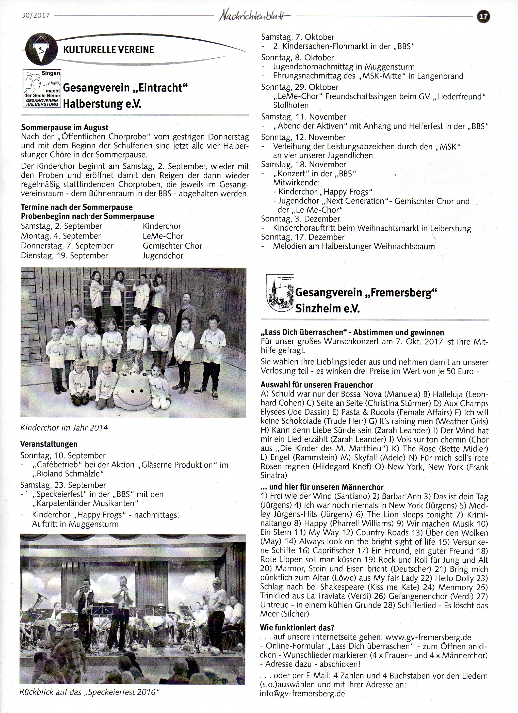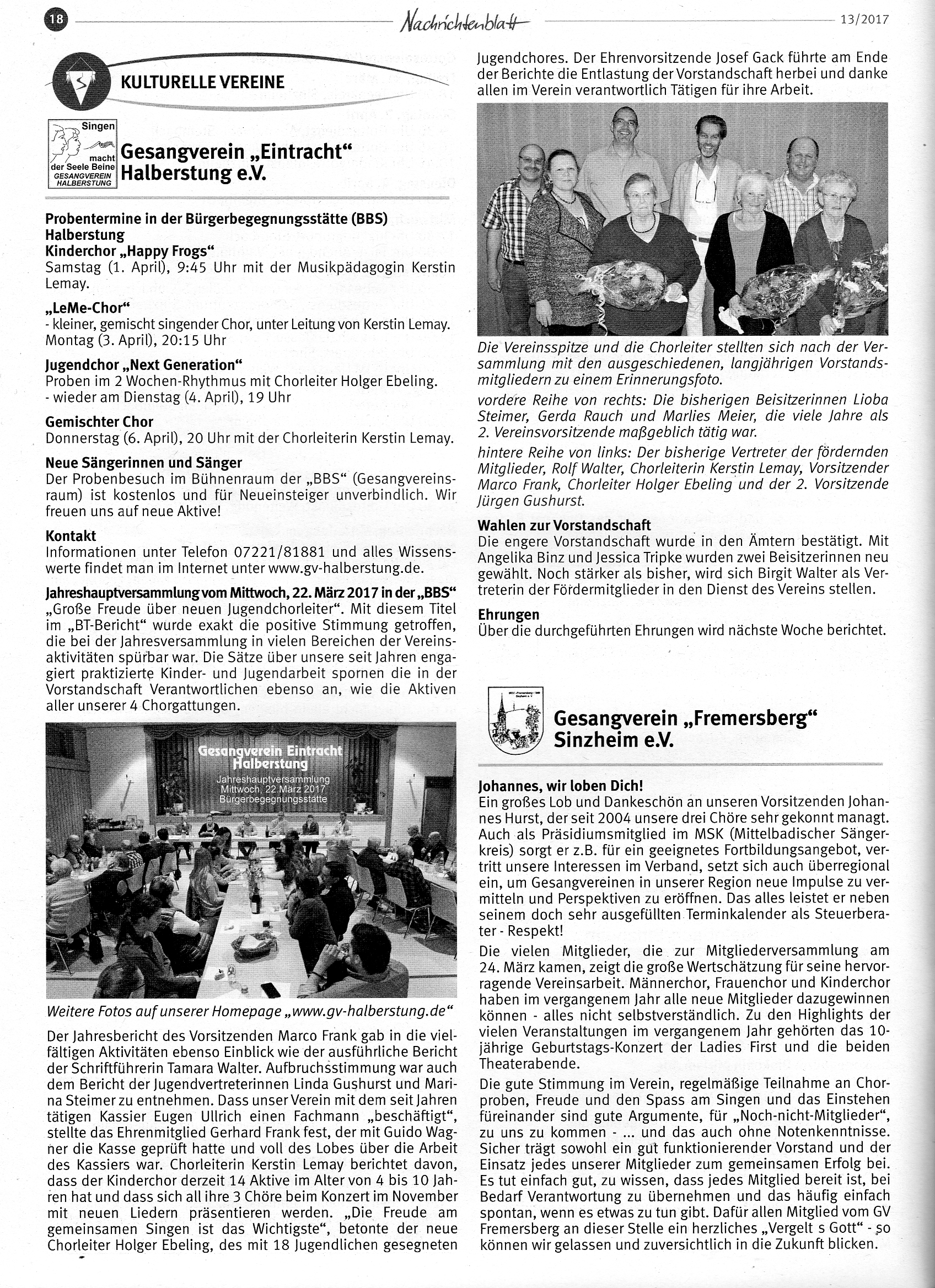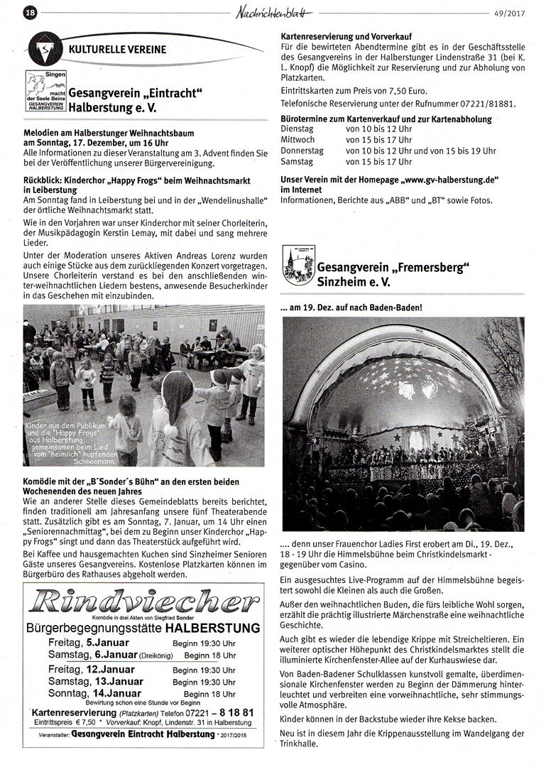 Veröffentlichungen im NACHRICHTENBLATT der Gemeinde Sinzheim