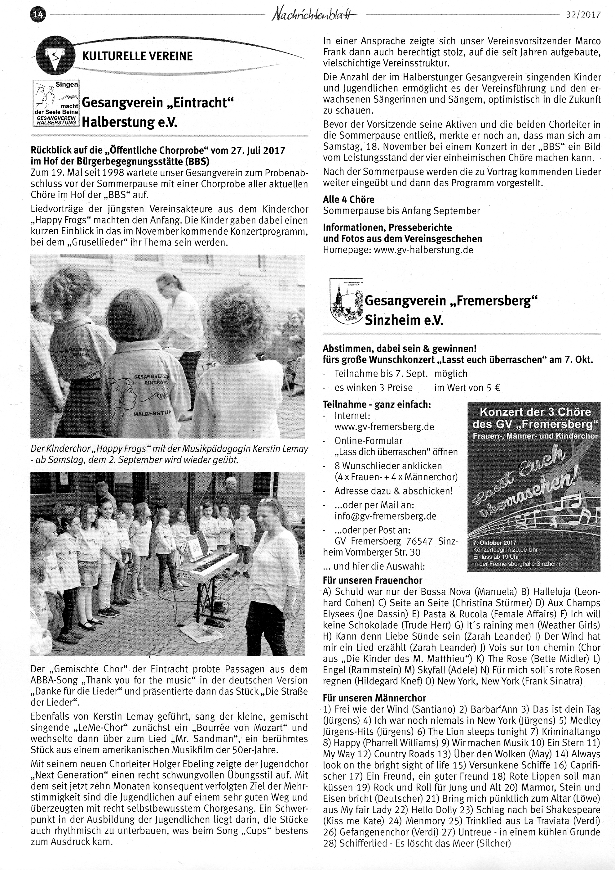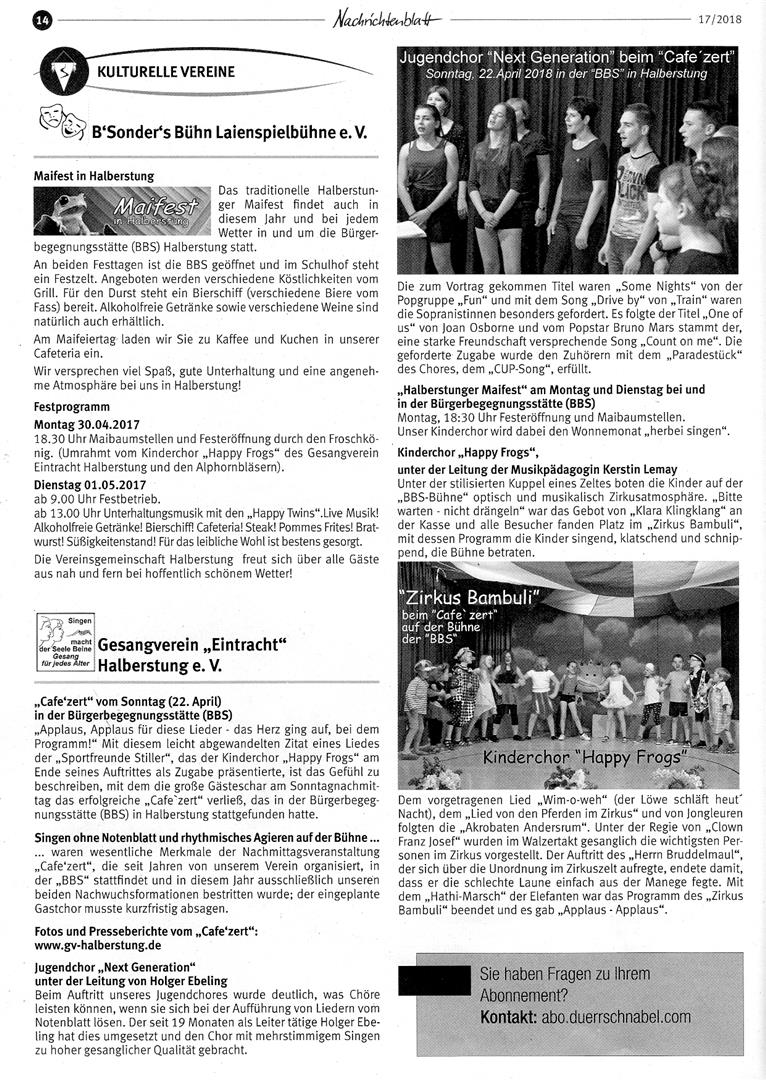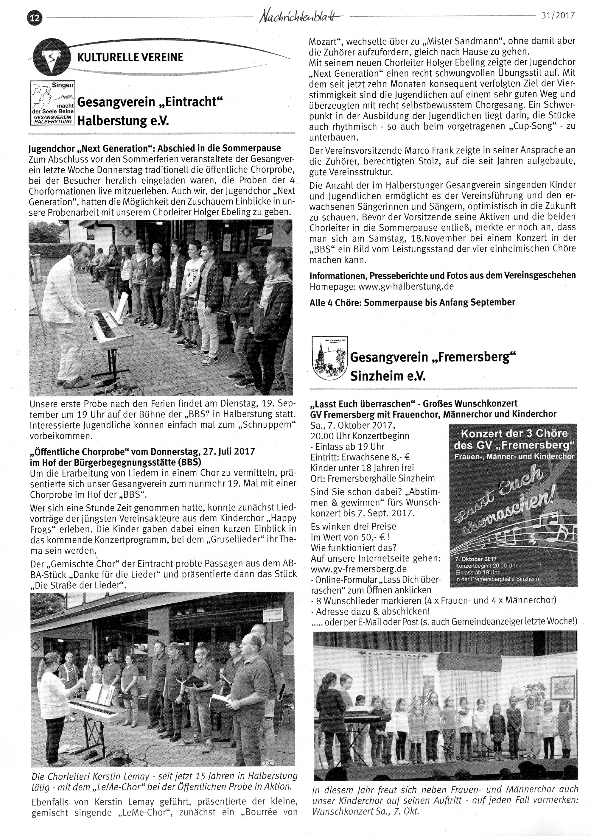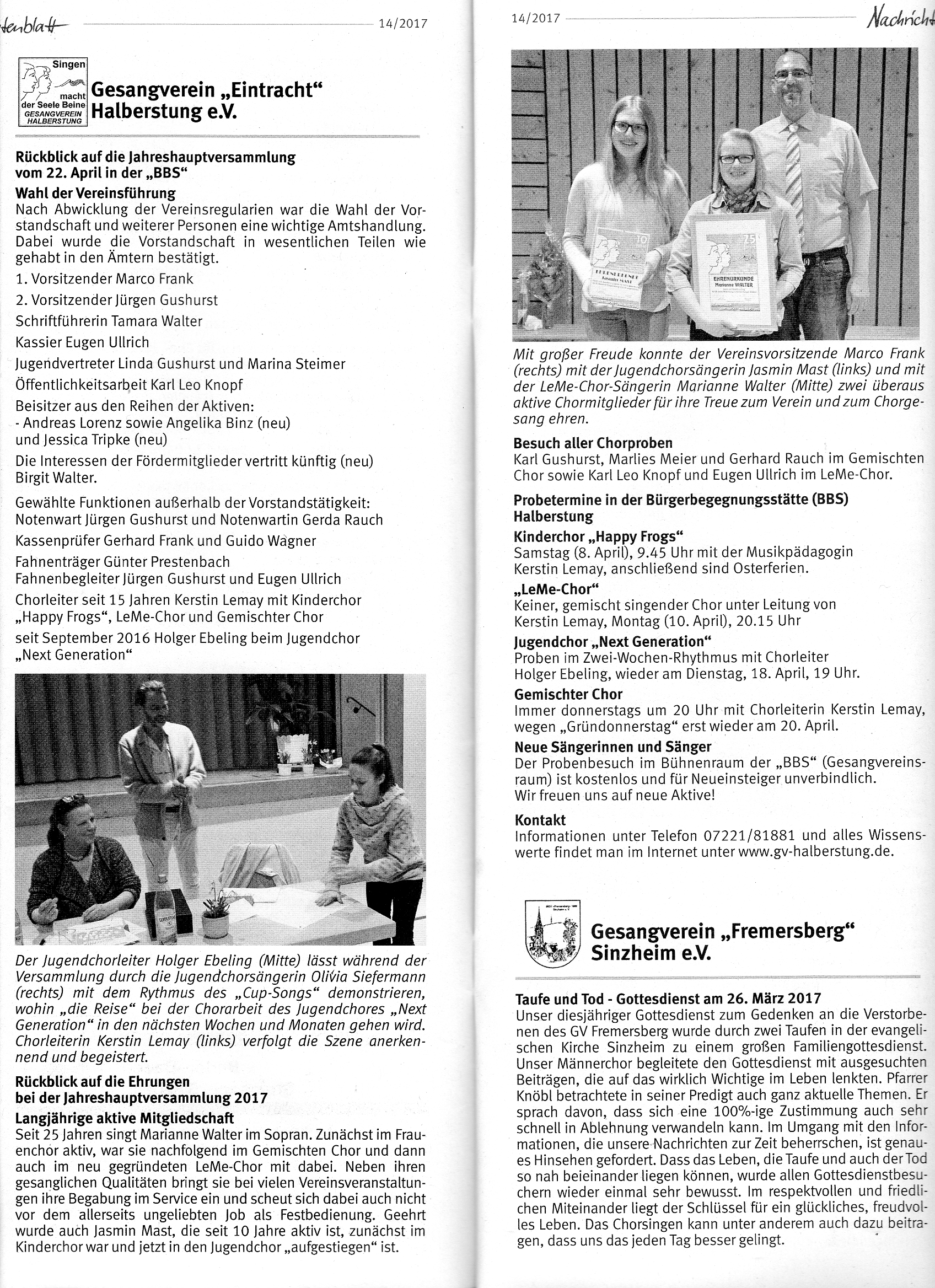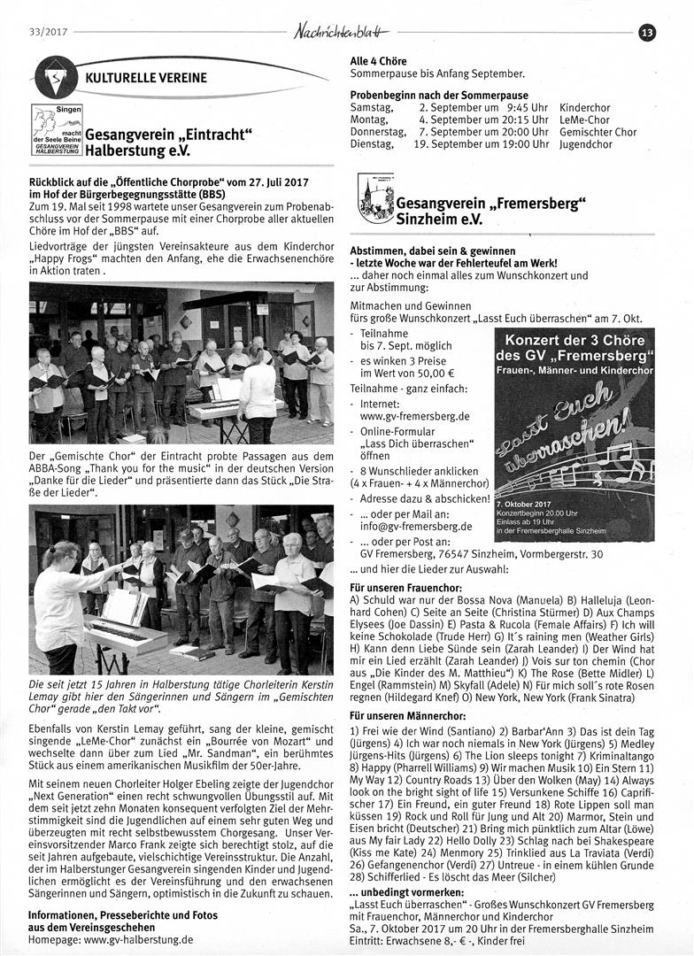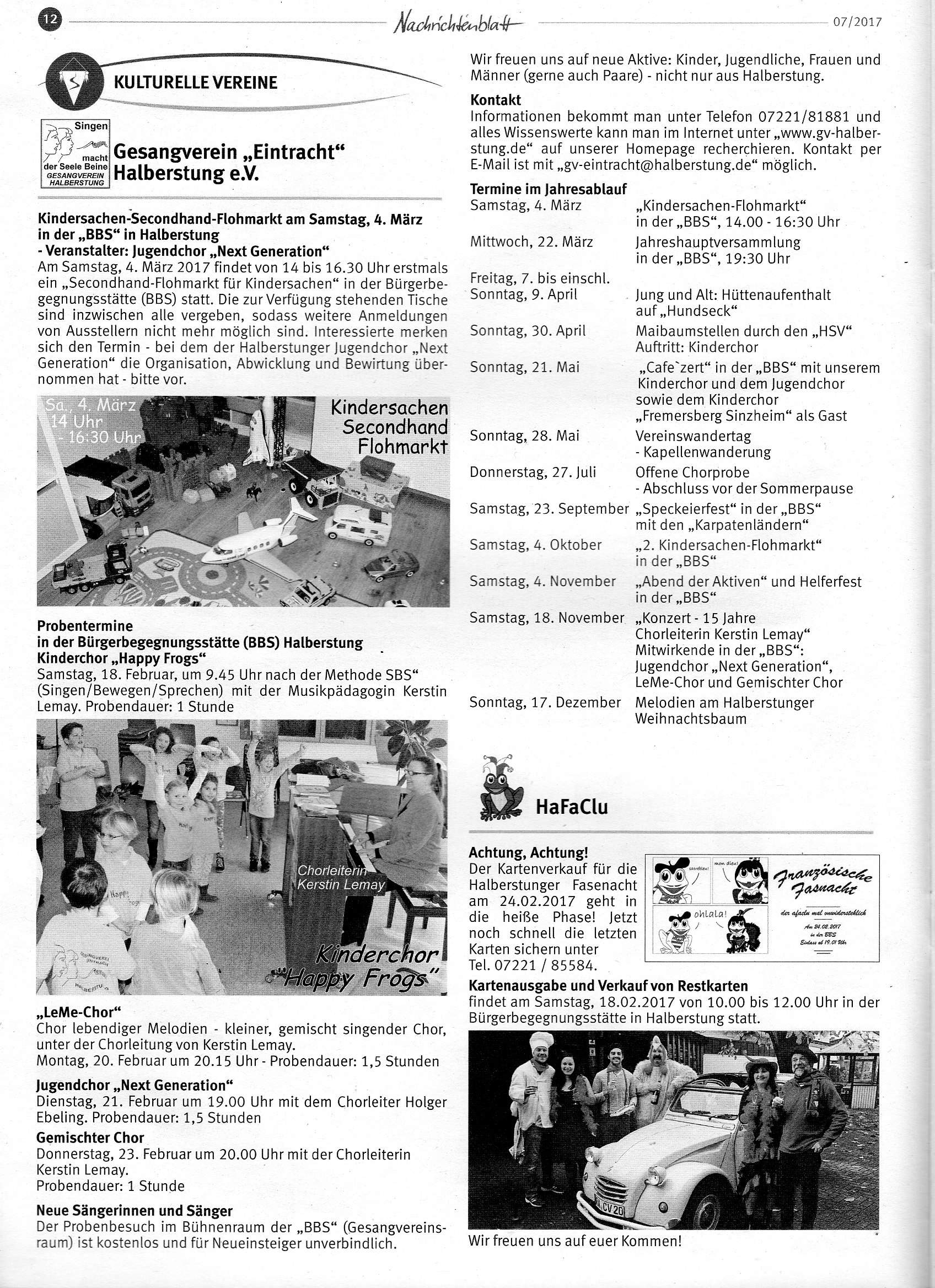 Veröffentlichungen im NACHRICHTENBLATT der Gemeinde Sinzheim